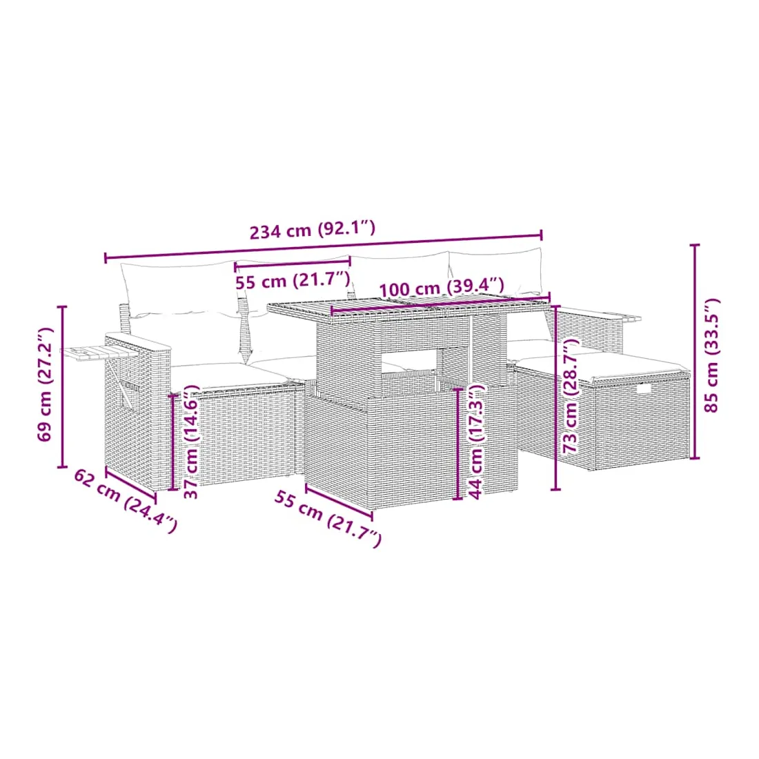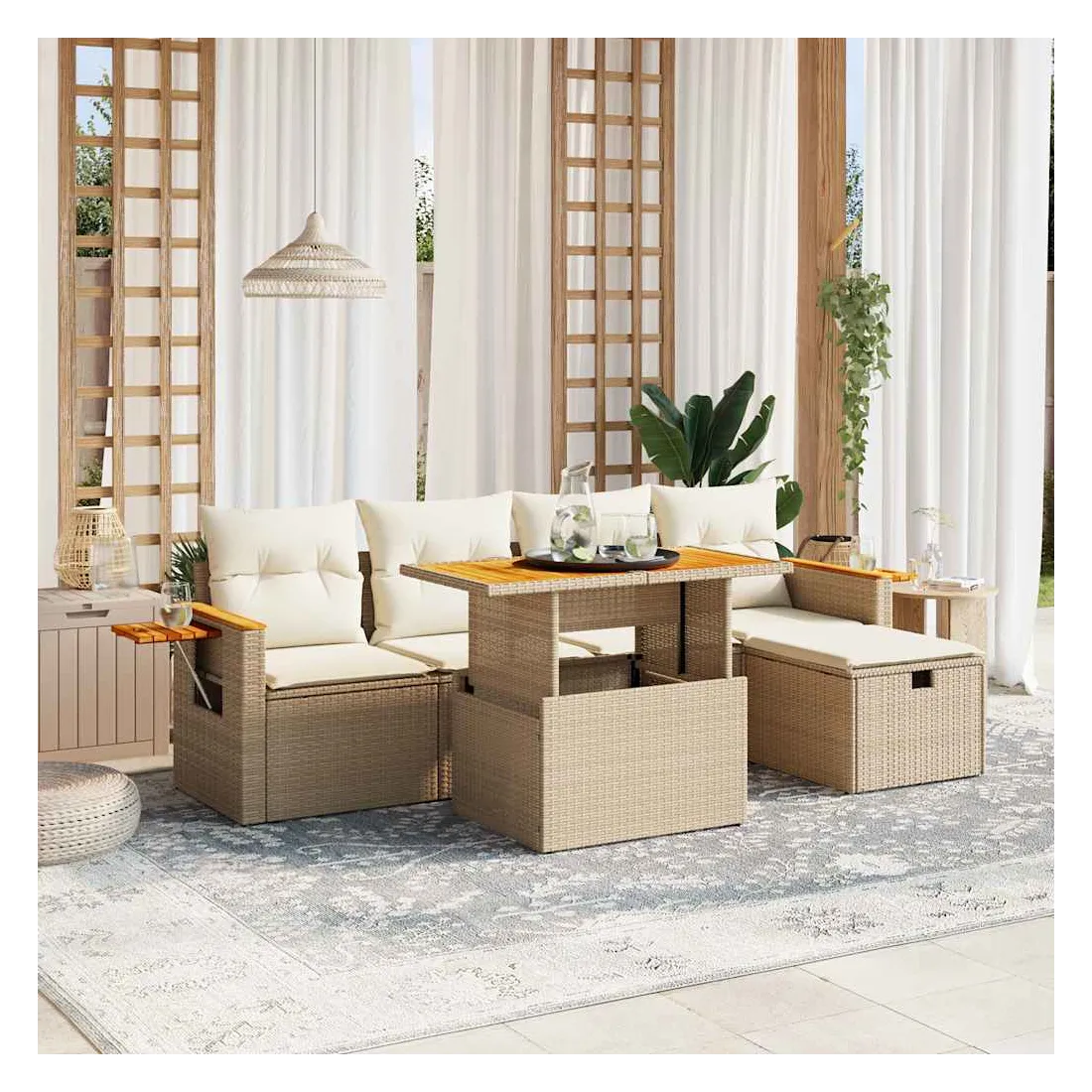 Cet ensemble de canapés de jardin est le complément parfait de votre arrière-cour, terrasse ou patio, offrant un espace confortable et accueillant pour discuter avec la famille et les amis ou simplement se détendre et profiter de l'extérieur. Matériau durable : la résine tressée, également connue sous le nom de poly rotin, est un matériau synthétique solide et nécessitant peu d'entretien qui ressemble au rotin naturel. Il est léger, facile à nettoyer et couramment utilisé pour les meubles d'extérieur en raison de sa durabilité et de ses propriétés de résistance aux intempéries.Dessus de table réglable : le dessus de table peut être soulevé pour rendre la table plus haute, ce qui transforme la table d'extérieur d'une table basse à une table de salle à manger. Elle est parfaite pour recevoir des invités ou prendre des repas à l'extérieur.Table d'appoint pratique : ce mobilier d'extérieur comprend une table d'appoint pliable avec un ressort à gaz sur les accoudoirs, offrant un endroit pratique pour garder vos essentiels à portée de main.Housse amovible et lavable : ces coussins de siège sont dotés de housses amovibles pour un lavage et un entretien faciles.Conception modulaire : cet ensemble de meubles d'extérieur a une conception modulaire, ce qui le rend complètement flexible et facile à déplacer, afin que vous puissiez créer un agencement de meubles d'extérieur personnalisé. Bon à savoir :Pour que vos meubles d'extérieur restent beaux, nous vous recommandons de les protéger avec une housse imperméable.