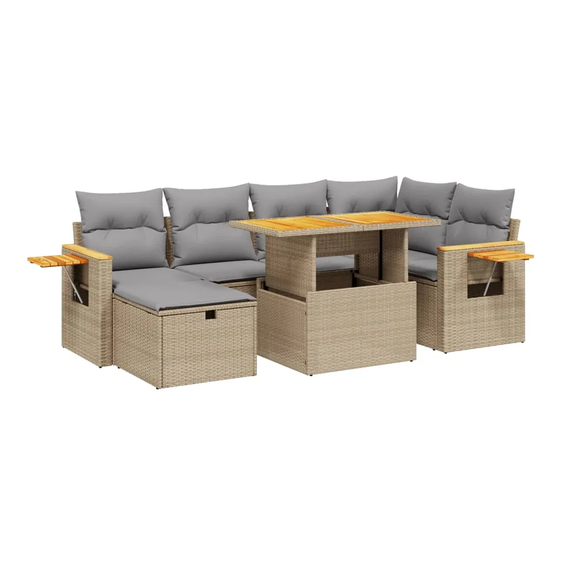 Cet ensemble de canapés de jardin est le complément parfait de votre arrière-cour, terrasse ou patio, offrant un espace confortable et accueillant pour discuter avec la famille et les amis ou simplement se détendre et profiter de l'extérieur. Matériau durable : la résine tressée, également connue sous le nom de poly rotin, est un matériau synthétique solide et nécessitant peu d'entretien qui ressemble au rotin naturel. Il est léger, facile à nettoyer et couramment utilisé pour les meubles d'extérieur en raison de sa durabilité et de ses propriétés de résistance aux intempéries.Dessus de table réglable : le dessus de table peut être soulevé pour rendre la table plus haute, ce qui transforme la table d'extérieur d'une table basse à une table de salle à manger. Elle est parfaite pour recevoir des invités ou prendre des repas à l'extérieur.Table d'appoint pratique : ce mobilier d'extérieur comprend une table d'appoint pliable avec un ressort à gaz sur les accoudoirs, offrant un endroit pratique pour garder vos essentiels à portée de main.Housse amovible et lavable : ces coussins de siège sont dotés de housses amovibles pour un lavage et un entretien faciles.Conception modulaire : cet ensemble de meubles d'extérieur a une conception modulaire, ce qui le rend complètement flexible et facile à déplacer, afin que vous puissiez créer un agencement de meubles d'extérieur personnalisé. Bon à savoir :Pour que vos meubles d'extérieur restent beaux, nous vous recommandons de les protéger avec une housse imperméable.