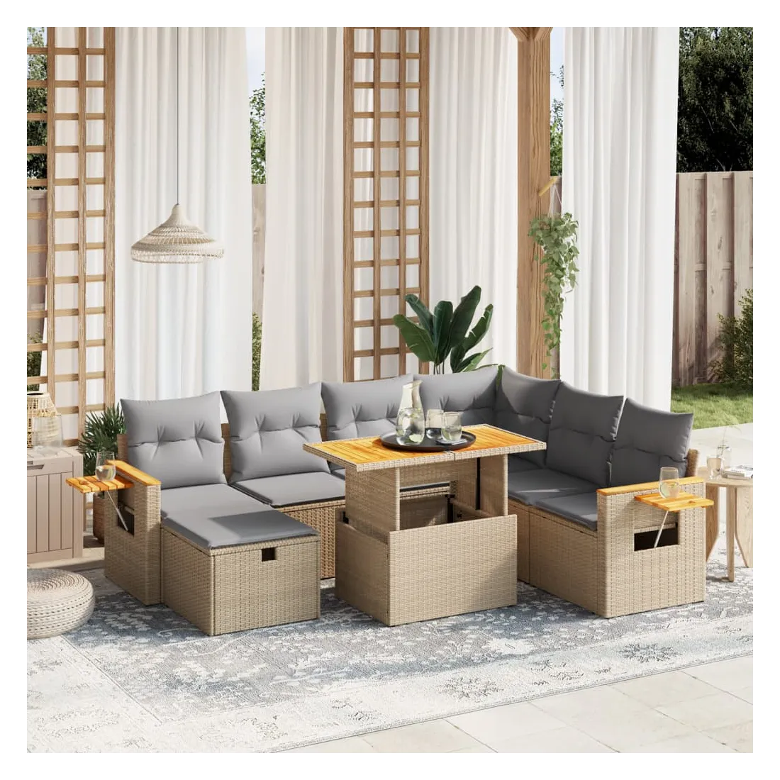 Salon de jardin avec coussins 8 pcs beige résine tressée