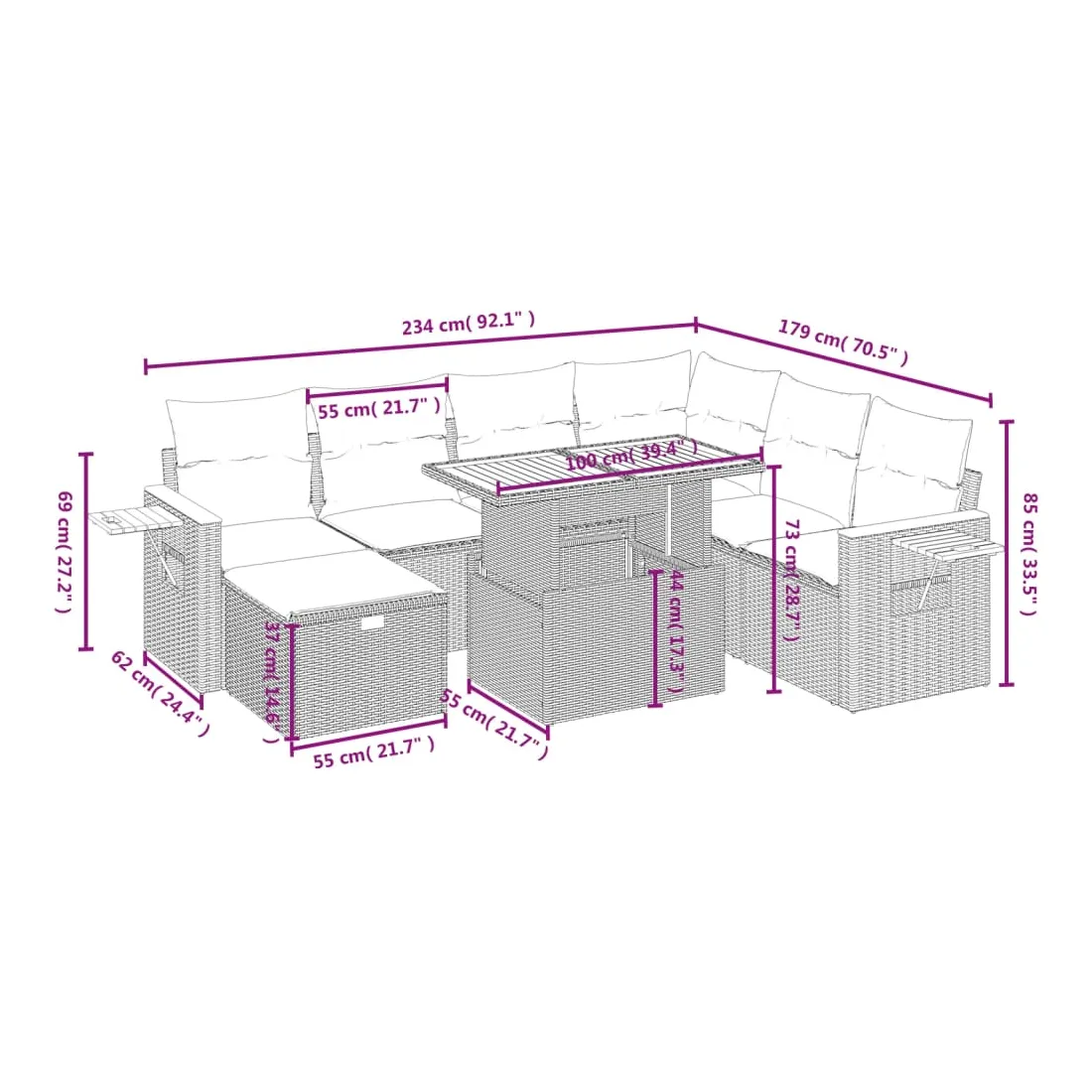 Cet ensemble de canapés de jardin est le complément parfait de votre arrière-cour, terrasse ou patio, offrant un espace confortable et accueillant pour discuter avec la famille et les amis ou simplement se détendre et profiter de l'extérieur. Matériau durable : la résine tressée, également connue sous le nom de poly rotin, est un matériau synthétique solide et nécessitant peu d'entretien qui ressemble au rotin naturel. Il est léger, facile à nettoyer et couramment utilisé pour les meubles d'extérieur en raison de sa durabilité et de ses propriétés de résistance aux intempéries.Dessus de table réglable : le dessus de table peut être soulevé pour rendre la table plus haute, ce qui transforme la table d'extérieur d'une table basse à une table de salle à manger. Elle est parfaite pour recevoir des invités ou prendre des repas à l'extérieur.Table d'appoint pratique : ce mobilier d'extérieur comprend une table d'appoint pliable avec un ressort à gaz sur les accoudoirs, offrant un endroit pratique pour garder vos essentiels à portée de main.Housse amovible et lavable : ces coussins de siège sont dotés de housses amovibles pour un lavage et un entretien faciles.Conception modulaire : cet ensemble de meubles d'extérieur a une conception modulaire, ce qui le rend complètement flexible et facile à déplacer, afin que vous puissiez créer un agencement de meubles d'extérieur personnalisé. Bon à savoir :Pour que vos meubles d'extérieur restent beaux, nous vous recommandons de les protéger avec une housse imperméable.