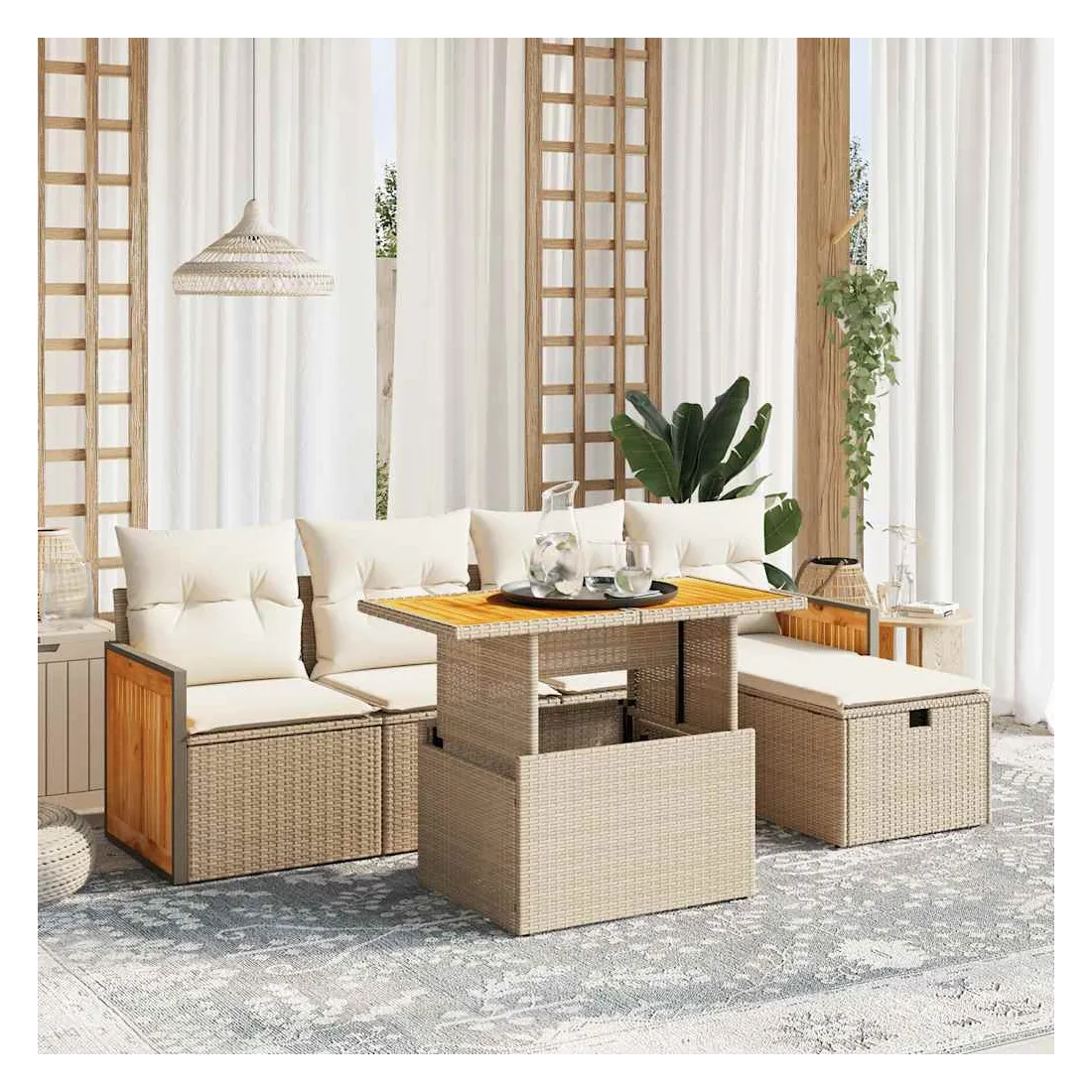 - Matériau : résine tressée, acier enduit de poudre, bois d'acacia massif avec finition à l'huile