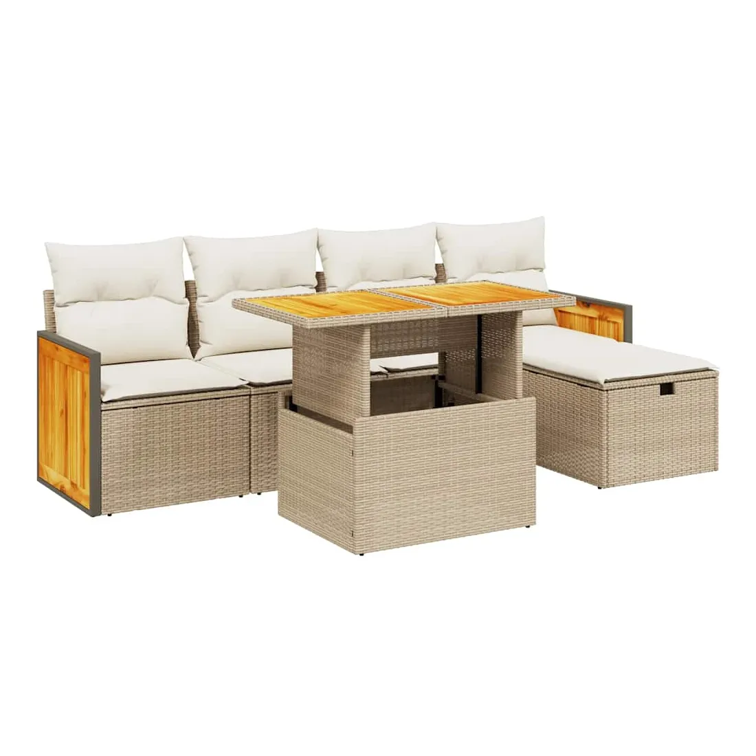 Cet ensemble de canapés de jardin est le complément parfait de votre arrière-cour, terrasse ou patio, offrant un espace confortable et accueillant pour discuter avec la famille et les amis ou simplement se détendre et profiter de l'extérieur. Matériau durable : la résine tressée, également connue sous le nom de poly rotin, est un matériau synthétique solide et nécessitant peu d'entretien qui ressemble au rotin naturel. Il est léger, facile à nettoyer et couramment utilisé pour les meubles d'extérieur en raison de sa durabilité et de ses propriétés de résistance aux intempéries.Dessus de table réglable : le dessus de table peut être soulevé pour rendre la table plus haute, ce qui transforme la table d'extérieur d'une table basse à une table de salle à manger. Elle est parfaite pour recevoir des invités ou prendre des repas à l'extérieur.Housse amovible et lavable : ces coussins de siège sont dotés de housses amovibles pour un lavage et un entretien faciles.Conception modulaire : cet ensemble de meubles d'extérieur a une conception modulaire, ce qui le rend complètement flexible et facile à déplacer, afin que vous puissiez créer un agencement de meubles d'extérieur personnalisé. Bon à savoir :Pour que vos meubles d'extérieur restent beaux, nous vous recommandons de les protéger avec une housse imperméable.