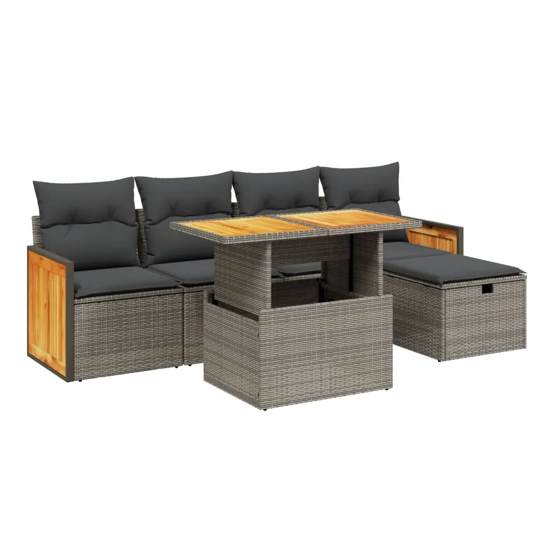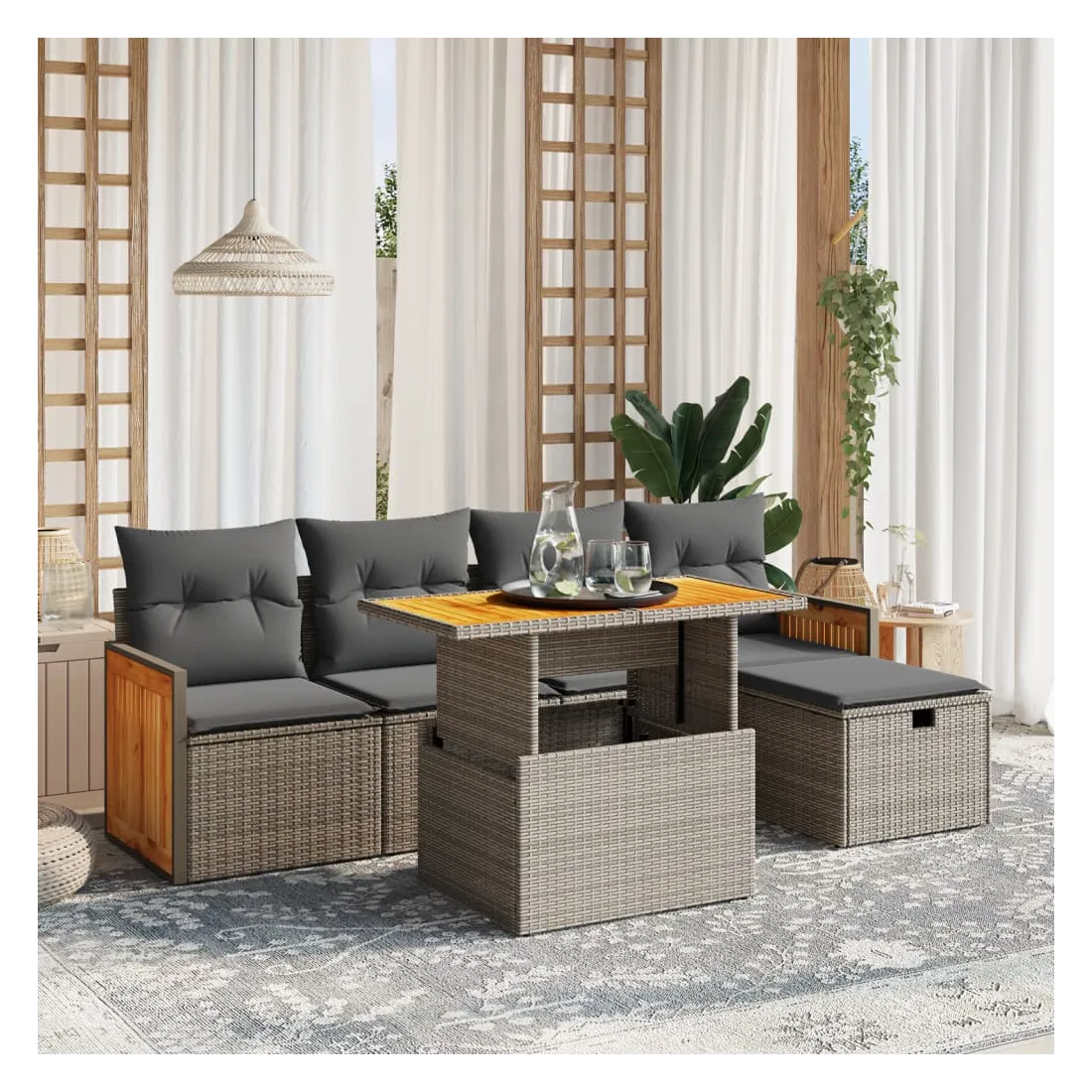 Cet ensemble de canapés de jardin est le complément parfait de votre arrière-cour, terrasse ou patio, offrant un espace confortable et accueillant pour discuter avec la famille et les amis ou simplement se détendre et profiter de l'extérieur. Matériau durable : la résine tressée, également connue sous le nom de poly rotin, est un matériau synthétique solide et nécessitant peu d'entretien qui ressemble au rotin naturel. Il est léger, facile à nettoyer et couramment utilisé pour les meubles d'extérieur en raison de sa durabilité et de ses propriétés de résistance aux intempéries.Dessus de table réglable : le dessus de table peut être soulevé pour rendre la table plus haute, ce qui transforme la table d'extérieur d'une table basse à une table de salle à manger. Elle est parfaite pour recevoir des invités ou prendre des repas à l'extérieur.Housse amovible et lavable : ces coussins de siège sont dotés de housses amovibles pour un lavage et un entretien faciles.Conception modulaire : cet ensemble de meubles d'extérieur a une conception modulaire, ce qui le rend complètement flexible et facile à déplacer, afin que vous puissiez créer un agencement de meubles d'extérieur personnalisé. Bon à savoir :Pour que vos meubles d'extérieur restent beaux, nous vous recommandons de les protéger avec une housse imperméable.