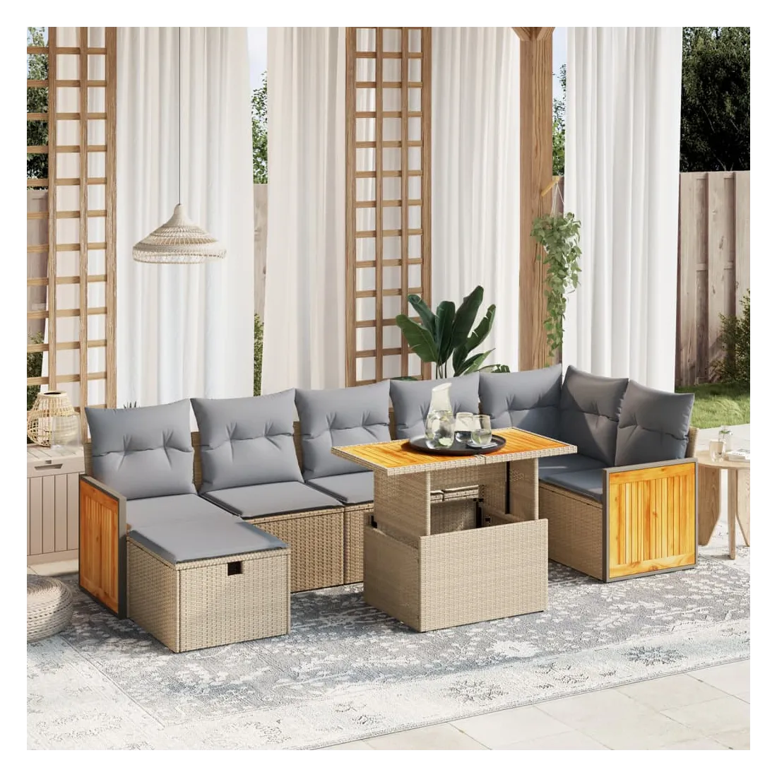 Salon de jardin avec coussins 8 pcs beige résine tressée