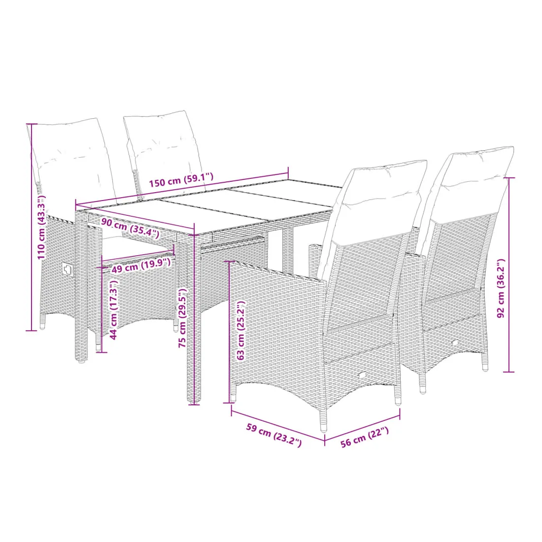 - Dimensions d'assise : 56 x 59 x 92 cm (l x P x H)