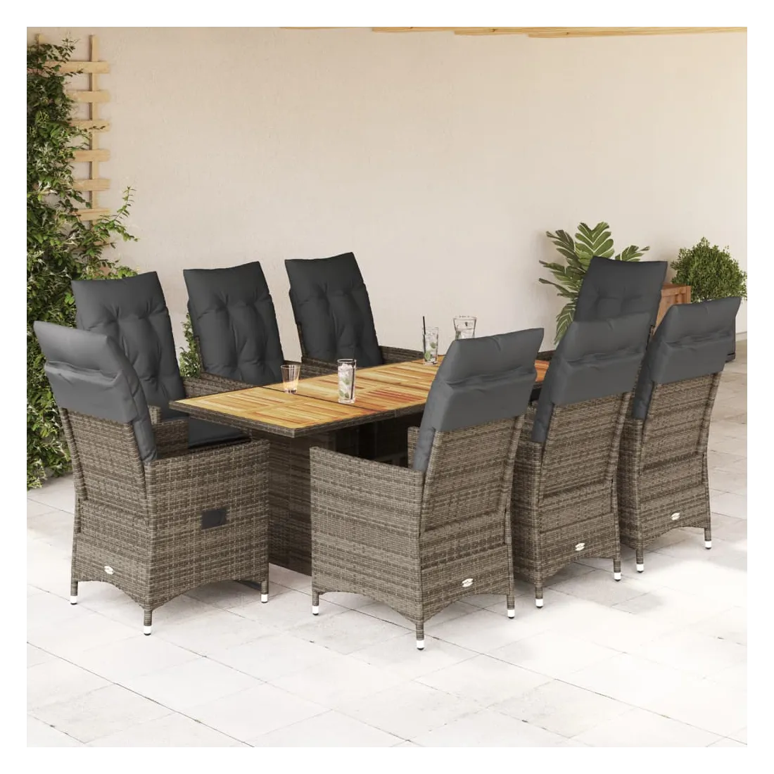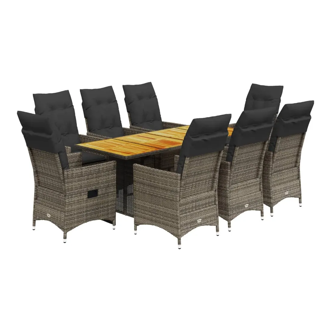 Cet ensemble de salle à manger de jardin est un excellent choix pour les repas en plein air ou simplement pour se détendre dans le jardin, la cour arrière ou sur la terrasse. Matériau durable : le rotin PE, également appelé polyrotin, est un matériau synthétique solide et facile d'entretien qui ressemble au rotin naturel. Il est léger, facile à nettoyer et couramment utilisé pour les meubles d'extérieur en raison de sa durabilité et de sa résistance aux intempéries. Dossier réglable : ce siège de jardin est équipé d'une poignée. Vous pouvez régler le dossier dans n'importe quelle position en tirant sur la poignée, puis le remettre rapidement dans sa position d'origine. Plateau stable et facile à nettoyer : cette table de jardin est dotée d'un plateau en bois d'acacia robuste, durable et facile à nettoyer avec un chiffon humide. Assise confortable : cet ensemble de mobilier d'extérieur, doté de coussins épais et rembourrés, offre une assise confortable. Housse amovible et lavable : ces coussins d'assise sont dotés de housses amovibles pour faciliter le lavage et l'entretien. Les coussins de dossier sont dotés d'un rabat à l'arrière pour faciliter leur fixation aux dossiers. Bon à savoir :Pour que votre mobilier d'extérieur reste beau, nous vous recommandons de le protéger avec une housse imperméable.