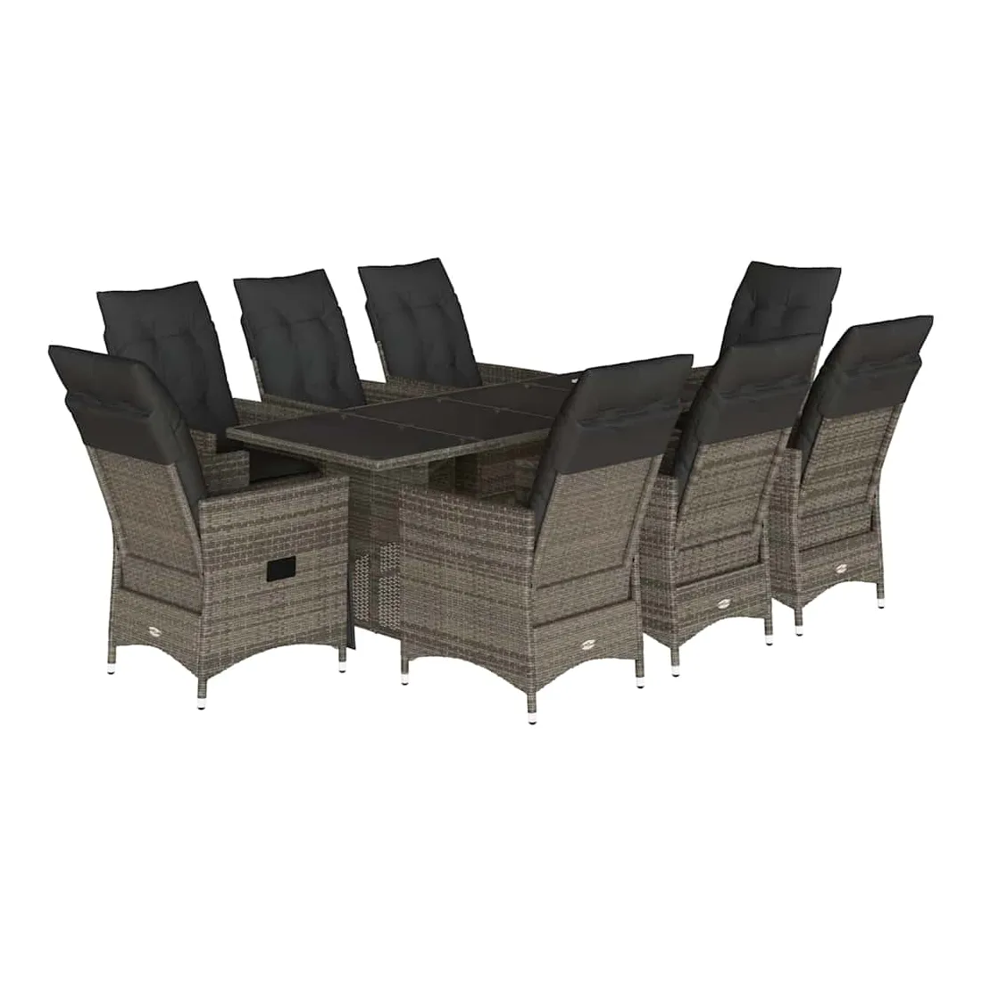 Cet ensemble de salle à manger de jardin est un excellent choix pour les repas en plein air ou simplement pour se détendre dans le jardin, la cour arrière ou sur la terrasse. Matériau durable : le rotin PE, également appelé polyrotin, est un matériau synthétique solide et facile d'entretien qui ressemble au rotin naturel. Il est léger, facile à nettoyer et couramment utilisé pour les meubles d'extérieur en raison de sa durabilité et de sa résistance aux intempéries. Dossier réglable : ce siège de jardin est équipé d'une poignée. Vous pouvez régler le dossier dans n'importe quelle position en tirant sur la poignée, puis le remettre rapidement dans sa position d'origine. Plateau en verre : le plateau de la table d'extérieur est en verre trempé solide et durable, ce qui le rend facile à nettoyer avec un chiffon humide et ajoute une touche d'élégance à votre espace extérieur. Assise confortable : cet ensemble de mobilier d'extérieur, doté de coussins épais et rembourrés, offre une assise confortable. Housse amovible et lavable : ces coussins d'assise sont dotés de housses amovibles pour faciliter le lavage et l'entretien. Les coussins de dossier sont munis d'un rabat à l'arrière pour faciliter leur fixation aux dossiers. Bon à savoir :Pour que votre mobilier d'extérieur reste beau, nous vous recommandons de le protéger avec une housse imperméable.