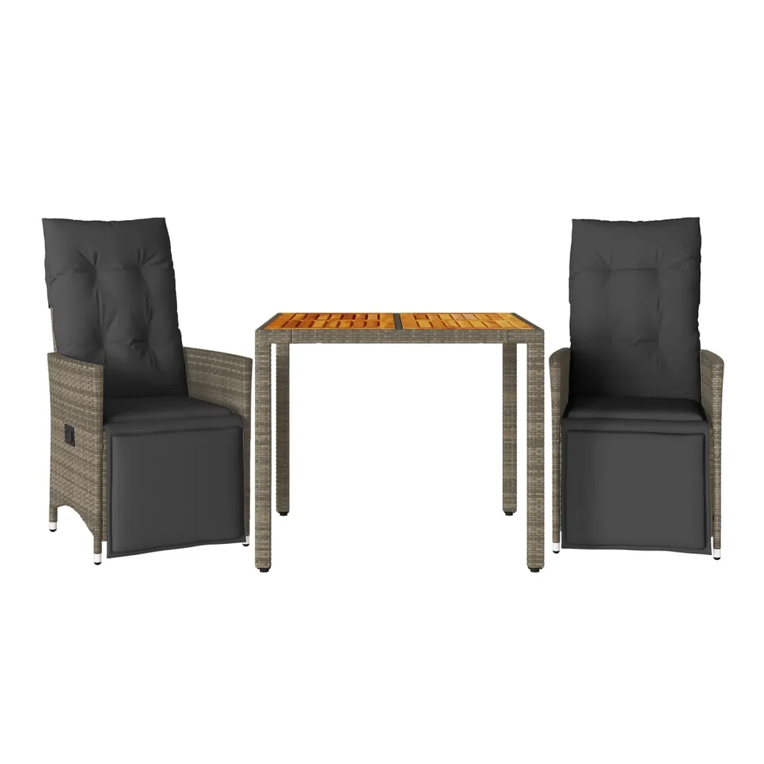 Savourez un café ou discutez avec votre famille et vos amis dans le jardin, l'arrière-cour ou sur le balcon avec cet ensemble de bistro confortable ! Matériau durable : la résine tressée, également connue sous le nom de poly rotin, est un matériau synthétique solide et nécessitant peu d'entretien qui ressemble au rotin naturel. Il est léger, facile à nettoyer et couramment utilisé pour les meubles d'extérieur en raison de sa durabilité et de ses propriétés de résistance aux intempéries.Dossier et repose-pied réglables : ce siège de jardin est doté d'une poignée. Vous pouvez régler le dossier et le repose-pied dans n'importe quelle position en tirant sur la poignée, et le remettre rapidement dans sa position initiale.Expérience d'assise confortable : ce mobilier d'extérieur, doté de coussins épais, offre une expérience d'assise confortable.Housse amovible et lavable : ces coussins de siège sont dotés de housses amovibles pour un lavage et un entretien faciles. Les coussins de dossier ont un rabat à l'arrière pour une fixation facile aux dossiers.Dessus stable et facile à nettoyer : cette table de jardin a un dessus en bois d'acacia robuste, durable et facile à nettoyer avec un chiffon humide. Bon à savoir :Pour que vos meubles d'extérieur restent beaux, nous vous recommandons de les protéger avec une housse imperméable.