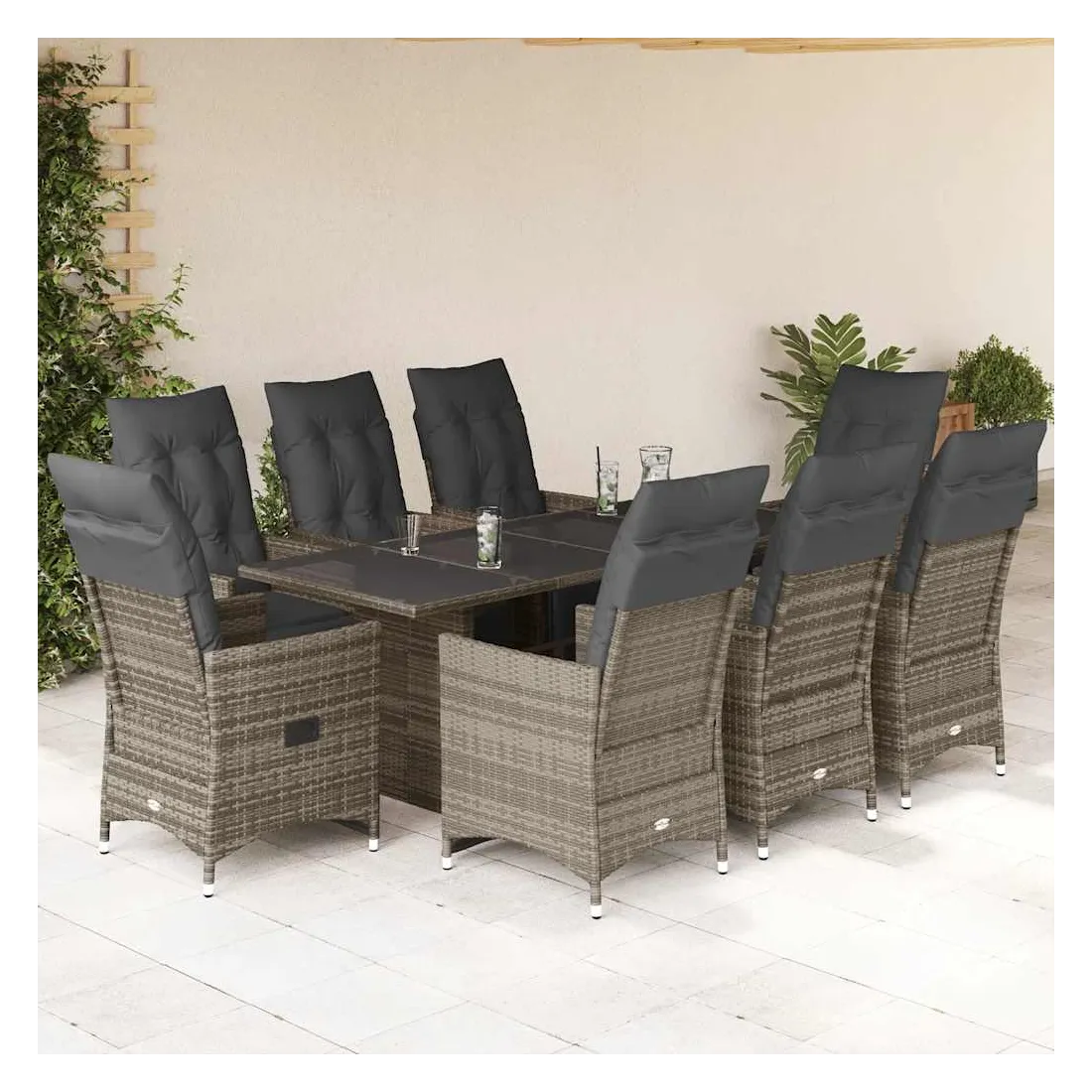 Savourez un café ou discutez avec votre famille et vos amis dans le jardin, l'arrière-cour ou sur le balcon avec cet ensemble de bistro confortable ! Matériau durable : la résine tressée, également connue sous le nom de poly rotin, est un matériau synthétique solide et nécessitant peu d'entretien qui ressemble au rotin naturel. Il est léger, facile à nettoyer et couramment utilisé pour les meubles d'extérieur en raison de sa durabilité et de ses propriétés de résistance aux intempéries.Dossier et repose-pied réglables : ce siège de jardin est doté d'une poignée. Vous pouvez régler le dossier et le repose-pied dans n'importe quelle position en tirant sur la poignée, et le remettre rapidement dans sa position initiale.Expérience d'assise confortable : ce mobilier d'extérieur, doté de coussins épais, offre une expérience d'assise confortable.Housse amovible et lavable : ces coussins de siège sont dotés de housses amovibles pour un lavage et un entretien faciles. Les coussins de dossier ont un rabat à l'arrière pour une fixation facile aux dossiers.Dessus en verre : le dessus de la table d'extérieur est fabriqué en verre trempé solide et durable, ce qui le rend facile à nettoyer avec un chiffon humide et ajoute une touche d'élégance à votre espace extérieur. Bon à savoir :Pour que vos meubles d'extérieur restent beaux, nous vous recommandons de les protéger avec une housse imperméable.