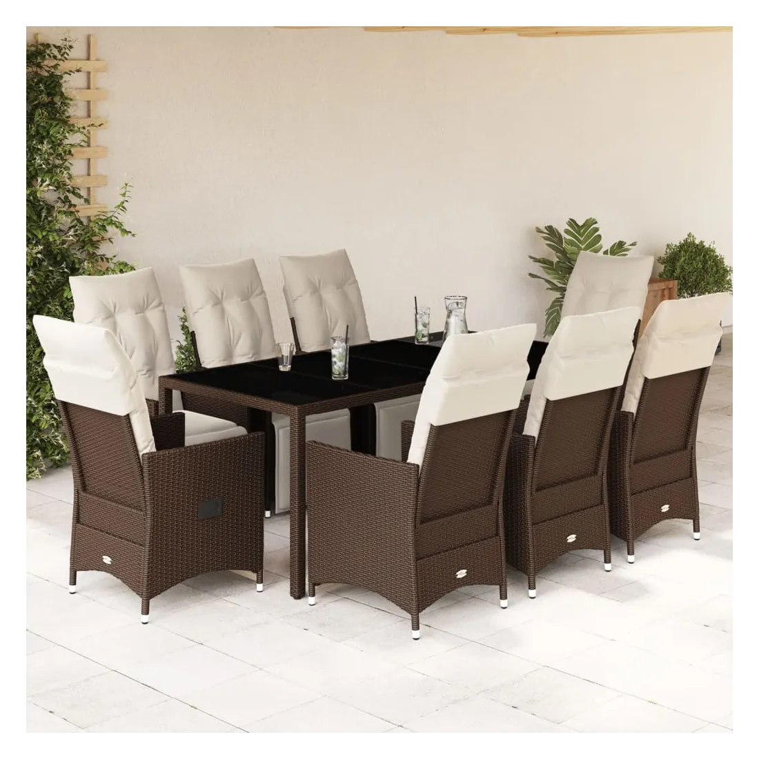Savourez un café ou discutez avec votre famille et vos amis dans le jardin, l'arrière-cour ou sur le balcon avec cet ensemble de bistro confortable ! Matériau durable : la résine tressée, également connue sous le nom de poly rotin, est un matériau synthétique solide et nécessitant peu d'entretien qui ressemble au rotin naturel. Il est léger, facile à nettoyer et couramment utilisé pour les meubles d'extérieur en raison de sa durabilité et de ses propriétés de résistance aux intempéries.Dossier et repose-pied réglables : ce siège de jardin est doté d'une poignée. Vous pouvez régler le dossier et le repose-pied dans n'importe quelle position en tirant sur la poignée, et le remettre rapidement dans sa position initiale.Expérience d'assise confortable : ce mobilier d'extérieur, doté de coussins épais, offre une expérience d'assise confortable.Housse amovible et lavable : ces coussins de siège sont dotés de housses amovibles pour un lavage et un entretien faciles. Les coussins de dossier ont un rabat à l'arrière pour une fixation facile aux dossiers.Dessus en verre : le dessus de la table d'extérieur est fabriqué en verre trempé solide et durable, ce qui le rend facile à nettoyer avec un chiffon humide et ajoute une touche d'élégance à votre espace extérieur. Bon à savoir :Pour que vos meubles d'extérieur restent beaux, nous vous recommandons de les protéger avec une housse imperméable.