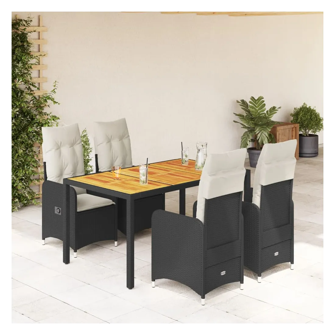 Savourez un café ou discutez avec votre famille et vos amis dans le jardin, l'arrière-cour ou sur le balcon avec cet ensemble de bistro confortable ! Matériau durable : la résine tressée, également connue sous le nom de poly rotin, est un matériau synthétique solide et nécessitant peu d'entretien qui ressemble au rotin naturel. Elle est légère, facile à nettoyer et couramment utilisée pour les meubles d'extérieur en raison de sa durabilité et de ses propriétés de résistance aux intempéries.Dossier réglable : ce siège de jardin est doté d'une poignée. Vous pouvez régler le dossier dans n'importe quelle position en tirant sur la poignée et le remettre rapidement dans sa position initiale.Expérience d'assise confortable : ce mobilier d'extérieur, doté de coussins épais, offre une expérience d'assise confortable.Housse amovible et lavable : ces coussins de siège sont dotés de housses amovibles pour un lavage et un entretien faciles. Les coussins de dossier ont un rabat à l'arrière pour une fixation facile aux dossiers.Dessus stable et facile à nettoyer : cette table de jardin a un dessus en bois d'acacia robuste, durable et facile à nettoyer avec un chiffon humide. Bon à savoir :Pour que vos meubles d'extérieur restent beaux, nous vous recommandons de les protéger avec une housse imperméable.