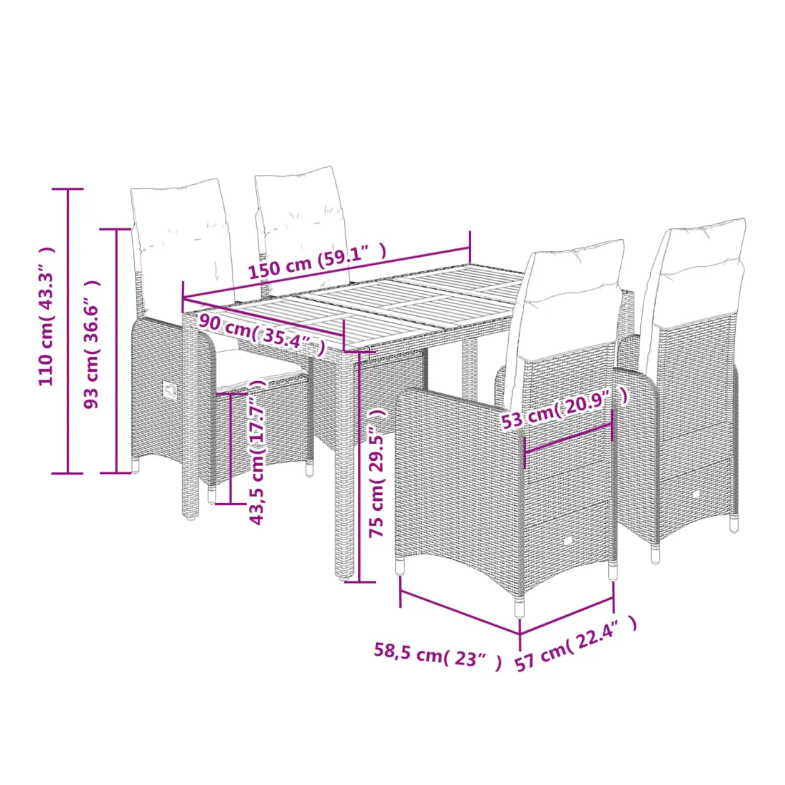- Matériau : résine tressée, acier enduit de poudre
