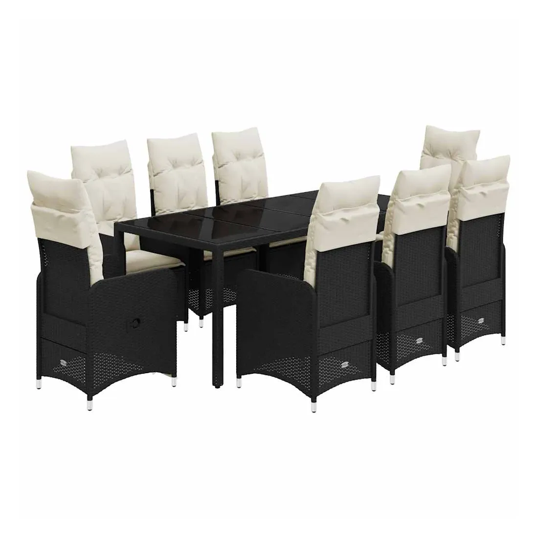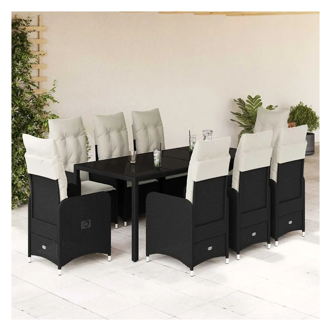 - Matériaux : Rotin PE, acier thermolaqué, verre trempé