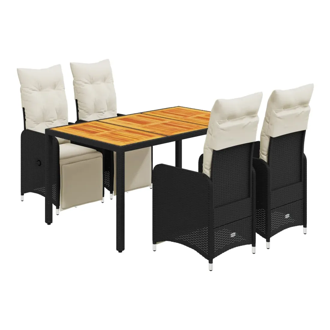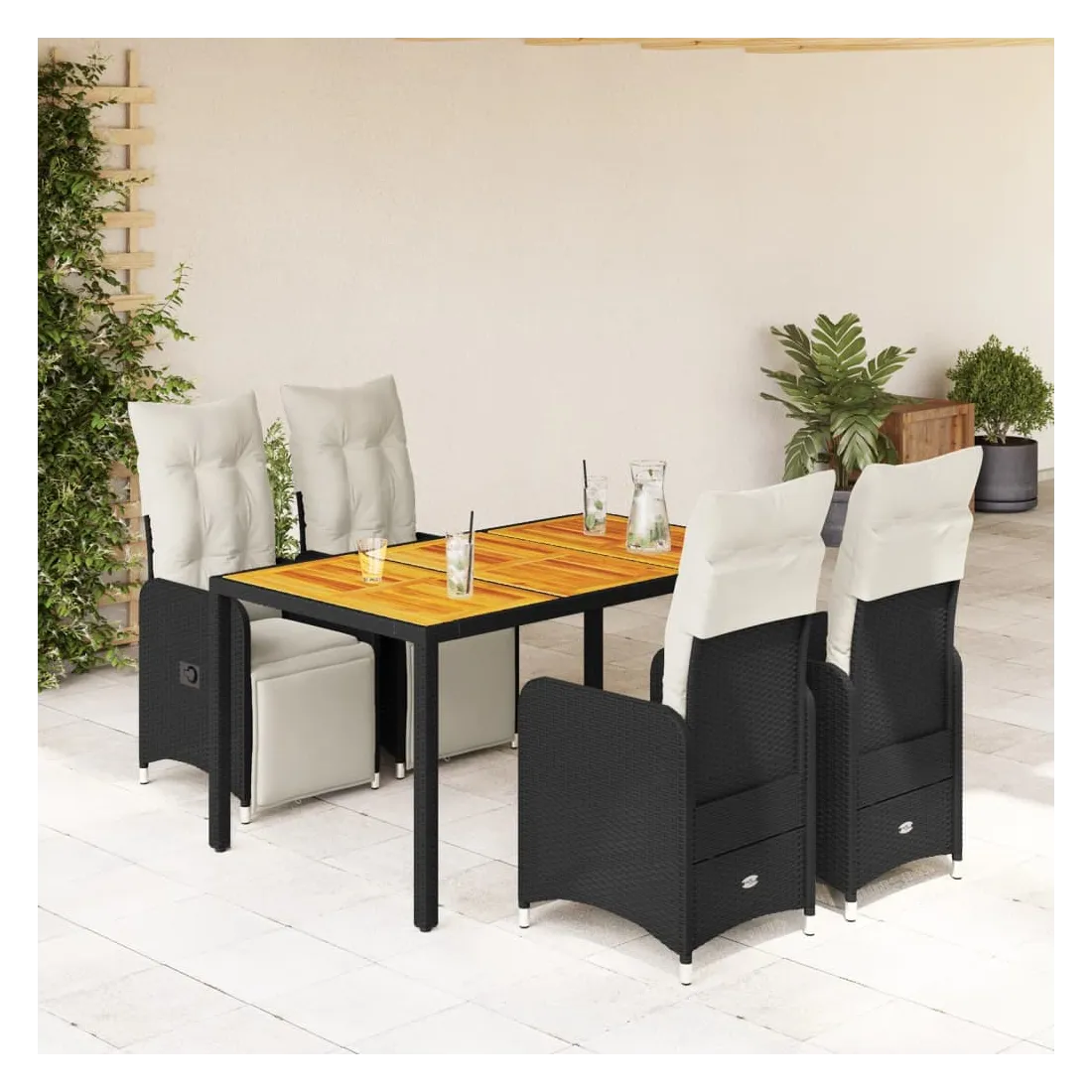 Savourez un café ou discutez avec votre famille et vos amis dans le jardin, l'arrière-cour ou sur le balcon avec cet ensemble de bistro confortable ! Matériau durable : la résine tressée, également connue sous le nom de poly rotin, est un matériau synthétique solide et nécessitant peu d'entretien qui ressemble au rotin naturel. Elle est légère, facile à nettoyer et couramment utilisée pour les meubles d'extérieur en raison de sa durabilité et de ses propriétés de résistance aux intempéries.Dossier et repose-pied réglables : ce siège de jardin est doté d'une poignée. Vous pouvez régler le dossier et le repose-pied dans n'importe quelle position en tirant sur la poignée, et le remettre rapidement dans sa position initiale.Expérience d'assise confortable : ce mobilier d'extérieur, doté de coussins épais, offre une expérience d'assise confortable.Housse amovible et lavable : ces coussins de siège sont dotés de housses amovibles pour un lavage et un entretien faciles. Les coussins de dossier ont un rabat à l'arrière pour une fixation facile aux dossiers.Dessus stable et facile à nettoyer : cette table de jardin a un dessus en bois d'acacia robuste, durable et facile à nettoyer avec un chiffon humide. Bon à savoir :Pour que vos meubles d'extérieur restent beaux, nous vous recommandons de les protéger avec une housse imperméable.