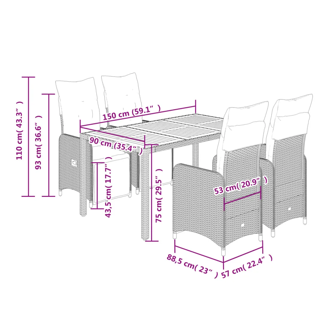 - Matériau : résine tressée, acier, bois d'acacia massif avec finition à l'huile
