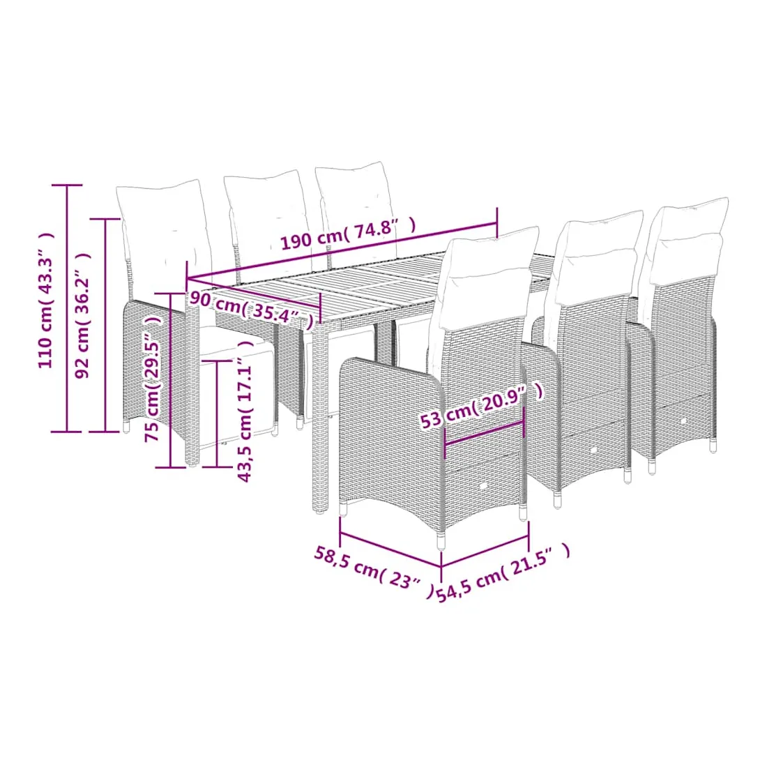 - Dimensions du coussin de dossier : 70 x 48 x 10 cm (L x l x é)
