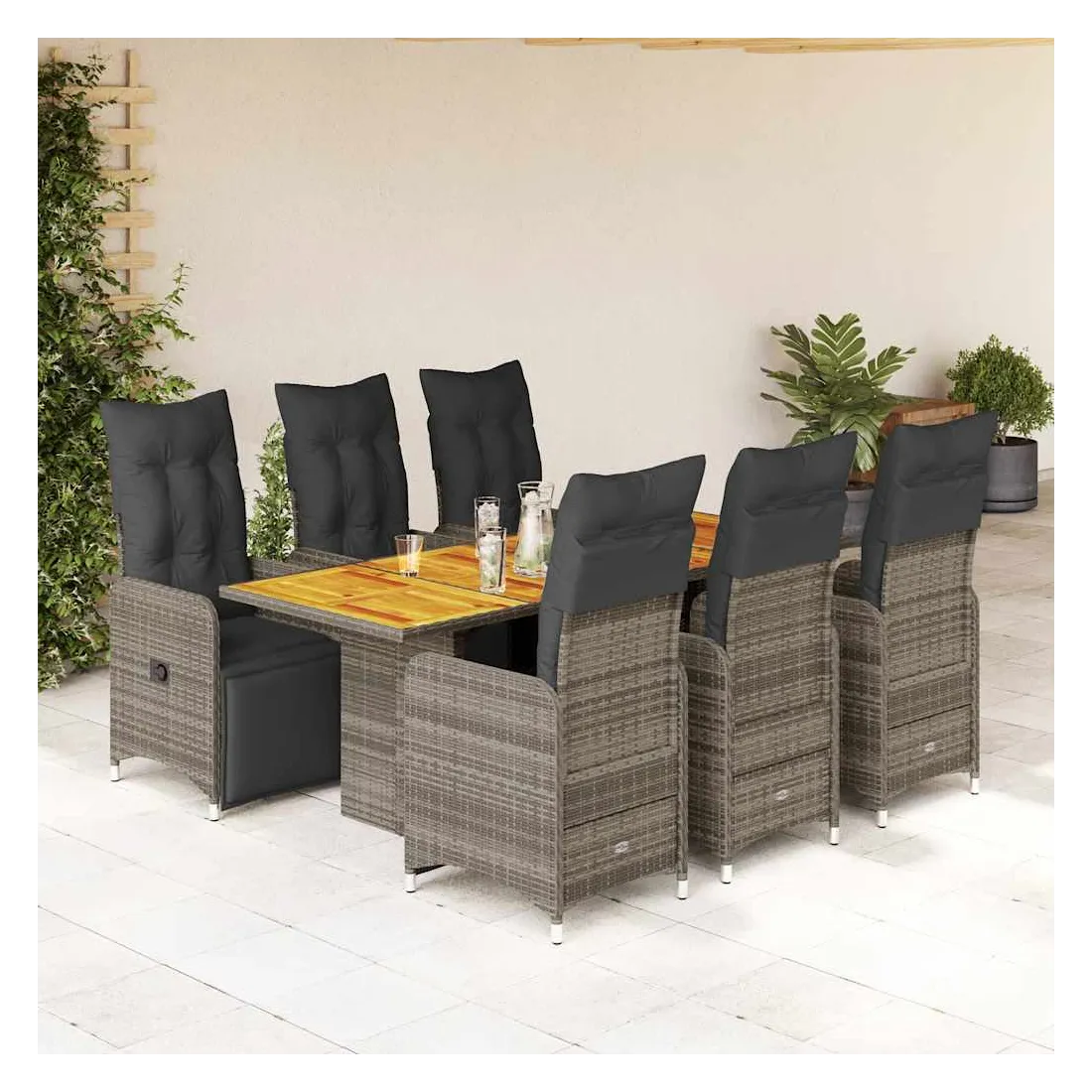 Savourez un café ou discutez avec votre famille et vos amis dans le jardin, l'arrière-cour ou sur le balcon avec cet ensemble de bistro confortable ! Matériau durable : la résine tressée, également connue sous le nom de poly rotin, est un matériau synthétique solide et nécessitant peu d'entretien qui ressemble au rotin naturel. Elle est légère, facile à nettoyer et couramment utilisée pour les meubles d'extérieur en raison de sa durabilité et de ses propriétés de résistance aux intempéries.Dossier et repose-pied réglables : ce siège de jardin est doté d'une poignée. Vous pouvez régler le dossier et le repose-pied dans n'importe quelle position en tirant sur la poignée, et le remettre rapidement dans sa position initiale.Expérience d'assise confortable : ce mobilier d'extérieur, doté de coussins épais, offre une expérience d'assise confortable.Housse amovible et lavable : ces coussins de siège sont dotés de housses amovibles pour un lavage et un entretien faciles. Les coussins de dossier ont un rabat à l'arrière pour une fixation facile aux dossiers.Dessus stable et facile à nettoyer : cette table de jardin a un dessus en bois d'acacia robuste, durable et facile à nettoyer avec un chiffon humide. Bon à savoir :Pour que vos meubles d'extérieur restent beaux, nous vous recommandons de les protéger avec une housse imperméable.