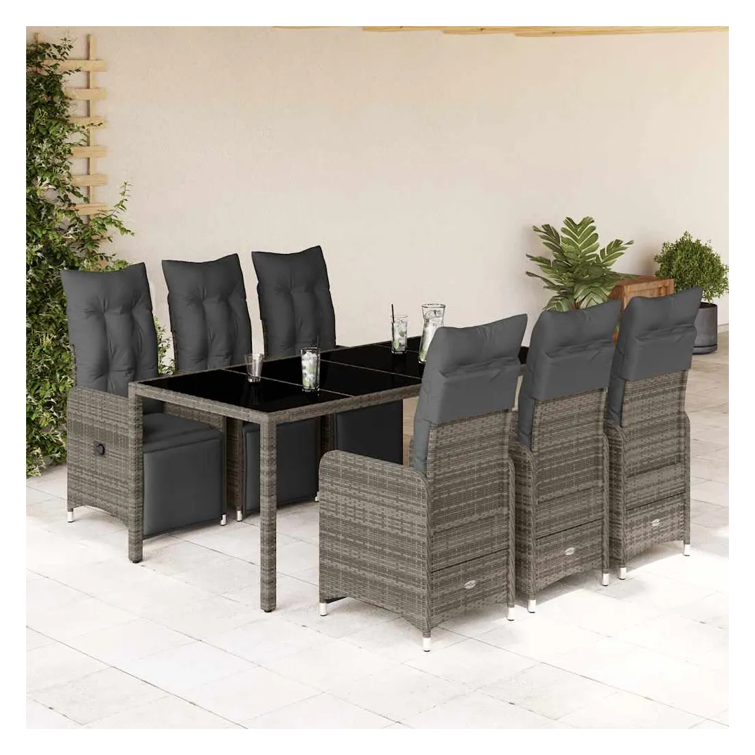Savourez un café ou discutez avec votre famille et vos amis dans le jardin, l'arrière-cour ou sur le balcon avec cet ensemble de bistro confortable ! Matériau durable : la résine tressée, également connue sous le nom de poly rotin, est un matériau synthétique solide et nécessitant peu d'entretien qui ressemble au rotin naturel. Elle est légère, facile à nettoyer et couramment utilisée pour les meubles d'extérieur en raison de sa durabilité et de ses propriétés de résistance aux intempéries.Dossier et repose-pied réglables : ce siège de jardin est doté d'une poignée. Vous pouvez régler le dossier et le repose-pied dans n'importe quelle position en tirant sur la poignée, et le remettre rapidement dans sa position initiale.Expérience d'assise confortable : ce mobilier d'extérieur, doté de coussins épais, offre une expérience d'assise confortable.Housse amovible et lavable : ces coussins de siège sont dotés de housses amovibles pour un lavage et un entretien faciles. Les coussins de dossier ont un rabat à l'arrière pour une fixation facile aux dossiers.Dessus en verre : le dessus de la table d'extérieur est fabriqué en verre trempé solide et durable, ce qui le rend facile à nettoyer avec un chiffon humide et ajoute une touche d'élégance à votre espace extérieur. Bon à savoir :Pour que vos meubles d'extérieur restent beaux, nous vous recommandons de les protéger avec une housse imperméable.
