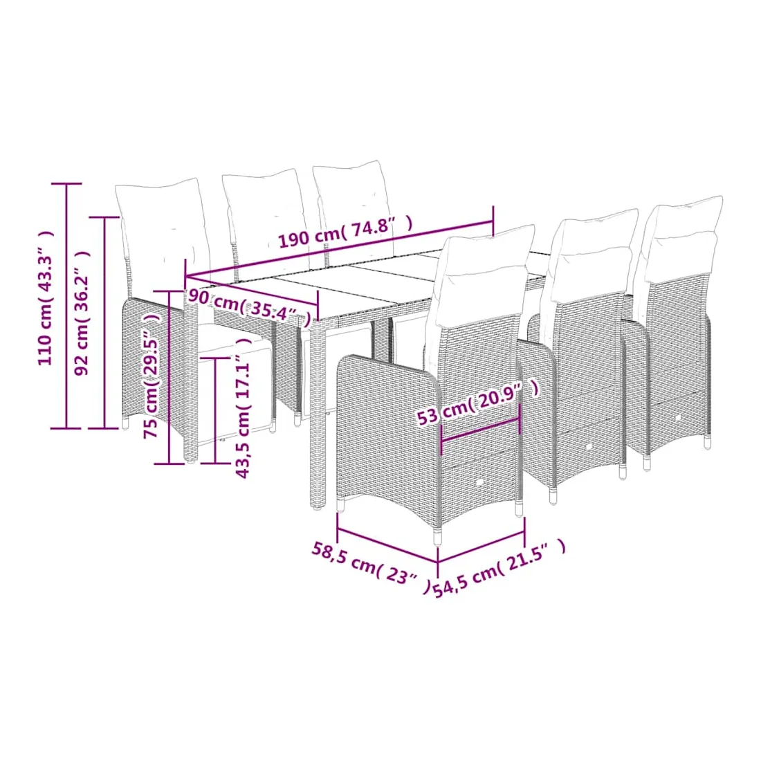 - Dimensions de l'assise : 54,5 x 58,5 x 92 cm (l x P x H)