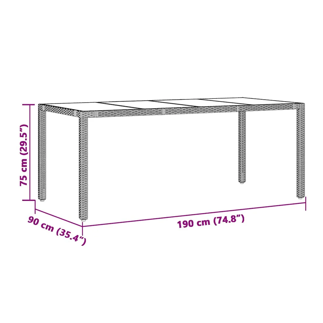 - Dimensions : 190 x 90 x 75 cm (L x l x H)