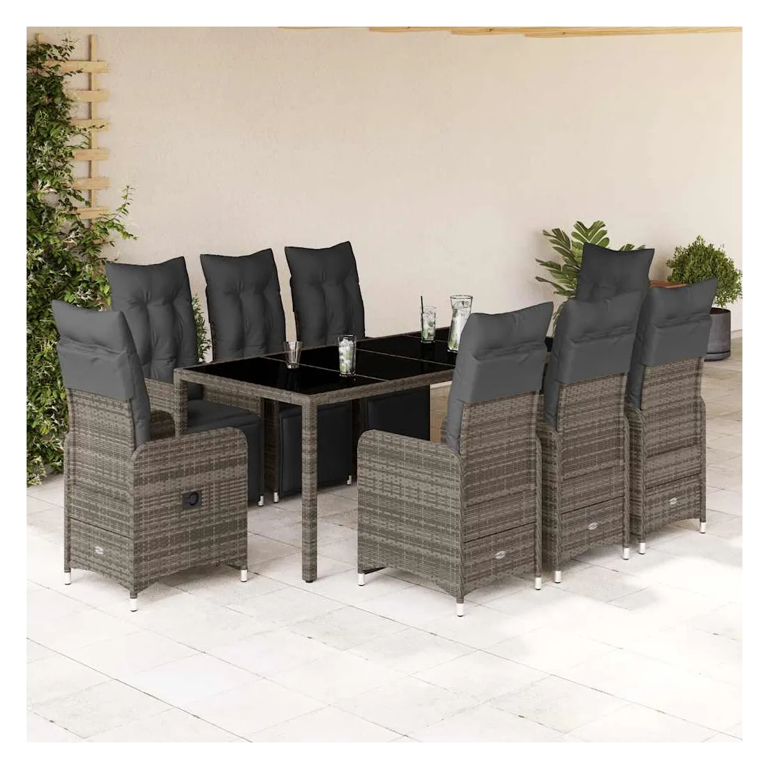 Savourez un café ou discutez avec votre famille et vos amis dans le jardin, l'arrière-cour ou sur le balcon avec cet ensemble de bistro confortable ! Matériau durable : la résine tressée, également connue sous le nom de poly rotin, est un matériau synthétique solide et nécessitant peu d'entretien qui ressemble au rotin naturel. Elle est légère, facile à nettoyer et couramment utilisée pour les meubles d'extérieur en raison de sa durabilité et de ses propriétés de résistance aux intempéries.Dossier et repose-pied réglables : ce siège de jardin est doté d'une poignée. Vous pouvez régler le dossier et le repose-pied dans n'importe quelle position en tirant sur la poignée, et le remettre rapidement dans sa position initiale.Expérience d'assise confortable : ce mobilier d'extérieur, doté de coussins épais, offre une expérience d'assise confortable.Housse amovible et lavable : ces coussins de siège sont dotés de housses amovibles pour un lavage et un entretien faciles. Les coussins de dossier ont un rabat à l'arrière pour une fixation facile aux dossiers.Dessus en verre : le dessus de la table d'extérieur est fabriqué en verre trempé solide et durable, ce qui le rend facile à nettoyer avec un chiffon humide et ajoute une touche d'élégance à votre espace extérieur. Bon à savoir :Pour que vos meubles d'extérieur restent beaux, nous vous recommandons de les protéger avec une housse imperméable.