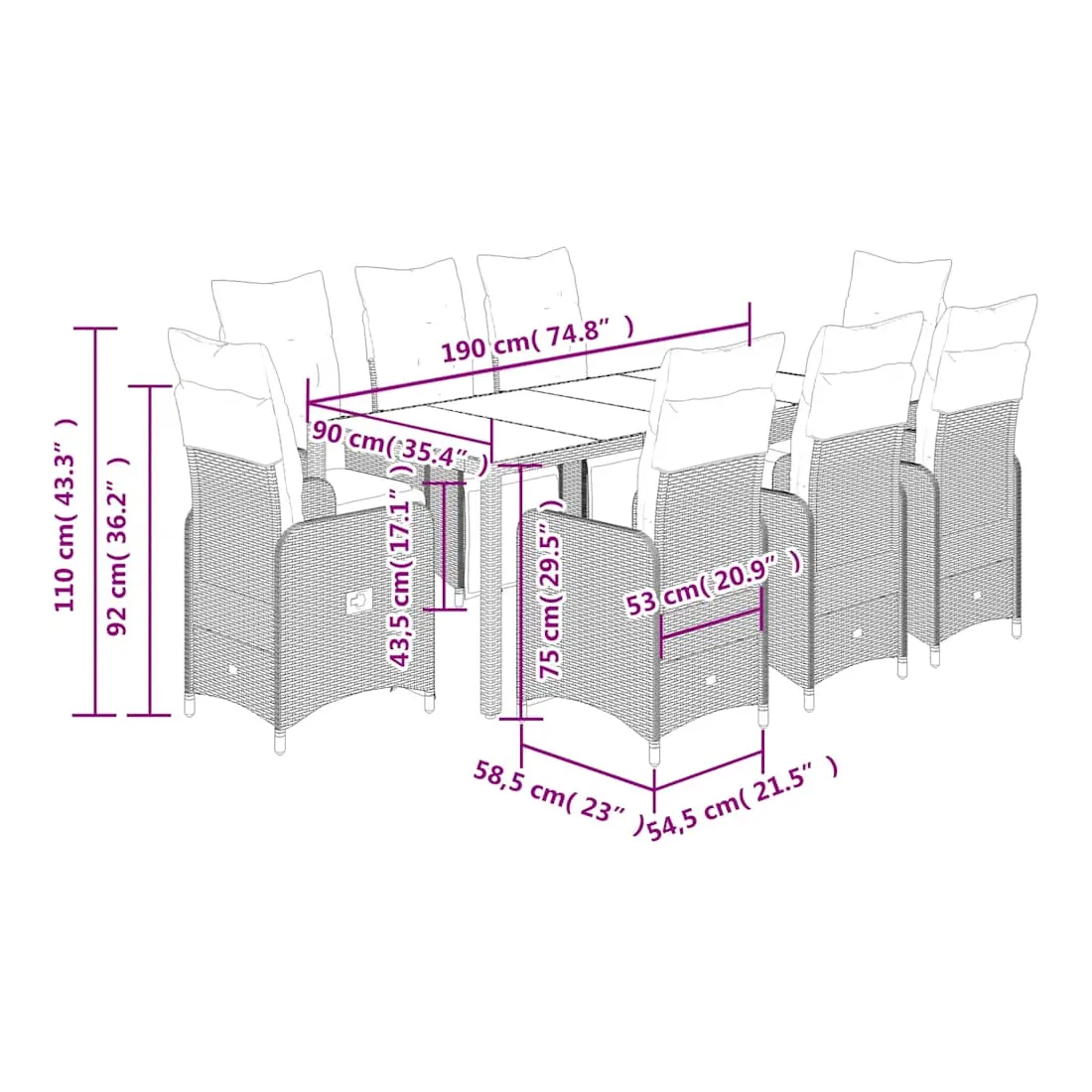 - Dimensions du coussin de dossier : 70 x 48 x 10 cm (L x l x é)