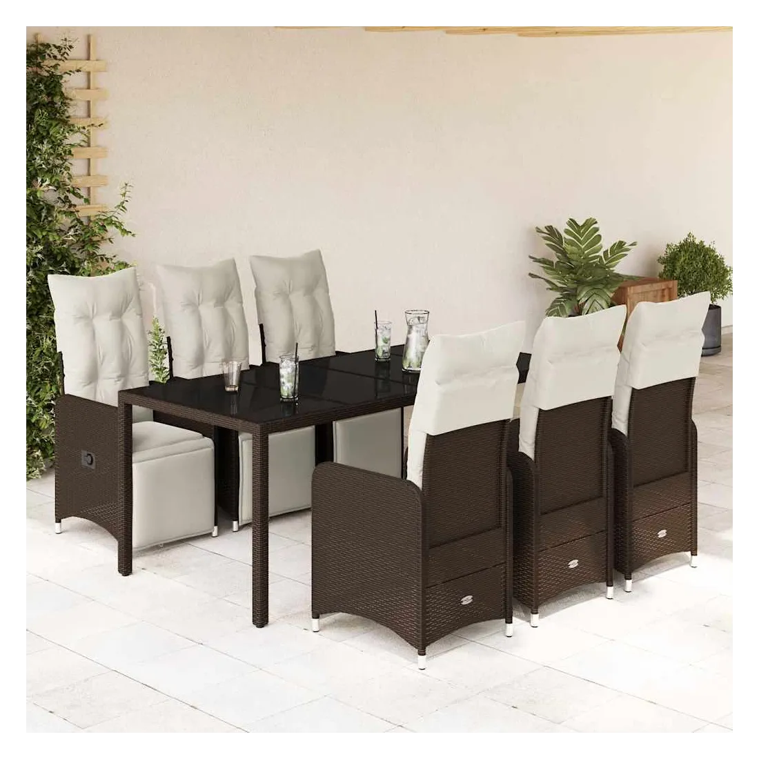 Savourez un café ou discutez avec votre famille et vos amis dans le jardin, l'arrière-cour ou sur le balcon avec cet ensemble de bistro confortable ! Matériau durable : la résine tressée, également connue sous le nom de poly rotin, est un matériau synthétique solide et nécessitant peu d'entretien qui ressemble au rotin naturel. Elle est légère, facile à nettoyer et couramment utilisée pour les meubles d'extérieur en raison de sa durabilité et de ses propriétés de résistance aux intempéries.Dossier et repose-pied réglables : ce siège de jardin est doté d'une poignée. Vous pouvez régler le dossier et le repose-pied dans n'importe quelle position en tirant sur la poignée, et le remettre rapidement dans sa position initiale.Expérience d'assise confortable : ce mobilier d'extérieur, doté de coussins épais, offre une expérience d'assise confortable.Housse amovible et lavable : ces coussins de siège sont dotés de housses amovibles pour un lavage et un entretien faciles. Les coussins de dossier ont un rabat à l'arrière pour une fixation facile aux dossiers.Dessus en verre : le dessus de la table d'extérieur est fabriqué en verre trempé solide et durable, ce qui le rend facile à nettoyer avec un chiffon humide et ajoute une touche d'élégance à votre espace extérieur. Bon à savoir :Pour que vos meubles d'extérieur restent beaux, nous vous recommandons de les protéger avec une housse imperméable.