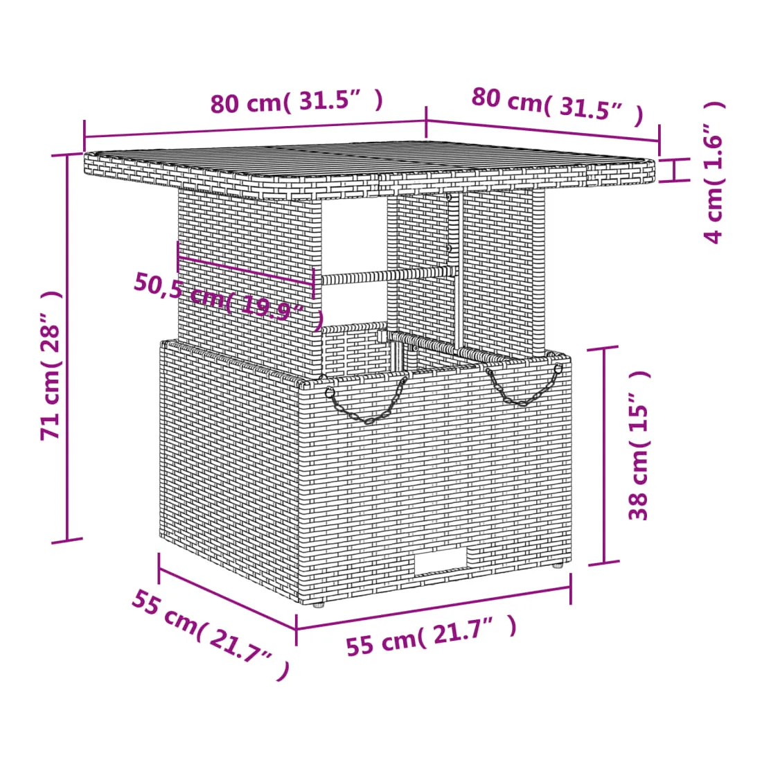 - Dimensions de la table : 80 x 80 x 40/71 cm (L x l x H)
