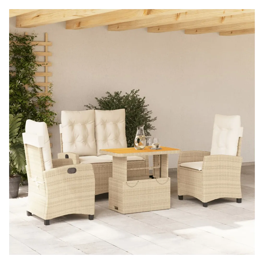 Cet ensemble de salle à manger de jardin est un excellent choix pour les repas en plein air ou pour vous détendre dans le jardin, dans l'arrière-cour ou sur la terrasse. Matériau durable : la résine tressée, également connue sous le nom de poly rotin, est un matériau synthétique solide et nécessitant peu d'entretien qui ressemble au rotin naturel. Il est léger, facile à nettoyer et couramment utilisé pour les meubles d'extérieur en raison de sa durabilité et de ses propriétés de résistance aux intempéries.Dossier réglable : ce siège de jardin est doté d'une poignée. Vous pouvez régler le dossier dans n'importe quelle position en tirant sur la poignée et le remettre rapidement dans sa position initiale.Dessus de table réglable : le dessus de table peut être soulevé pour rendre la table plus haute, ce qui transforme la table d'extérieur d'une table basse à une table de salle à manger. Elle est parfaite pour recevoir des invités ou prendre des repas à l'extérieur.Housse amovible et lavable : ces coussins de siège sont dotés de housses amovibles pour un lavage et un entretien faciles. Les coussins de dossier ont un rabat à l'arrière pour une fixation facile aux dossiers.Expérience d'assise confortable : ce mobilier d'extérieur, doté de coussins épais, offre une expérience d'assise confortable. Bon à savoir :Pour que vos meubles d'extérieur restent beaux, nous vous recommandons de les protéger avec une housse imperméable.
