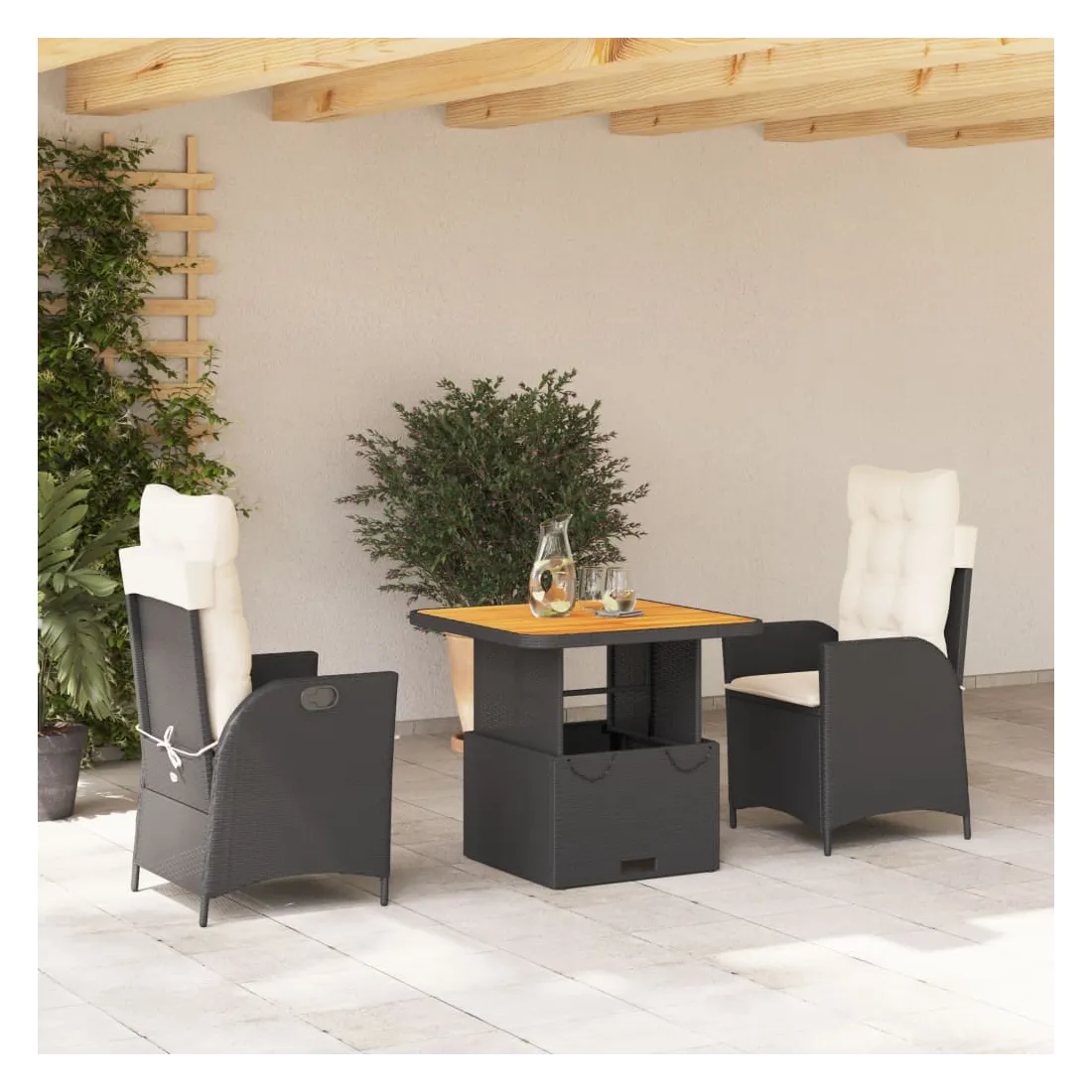 - Matériau : résine tressée, acier enduit de poudre, bois d'acacia massif avec finition à l'huile