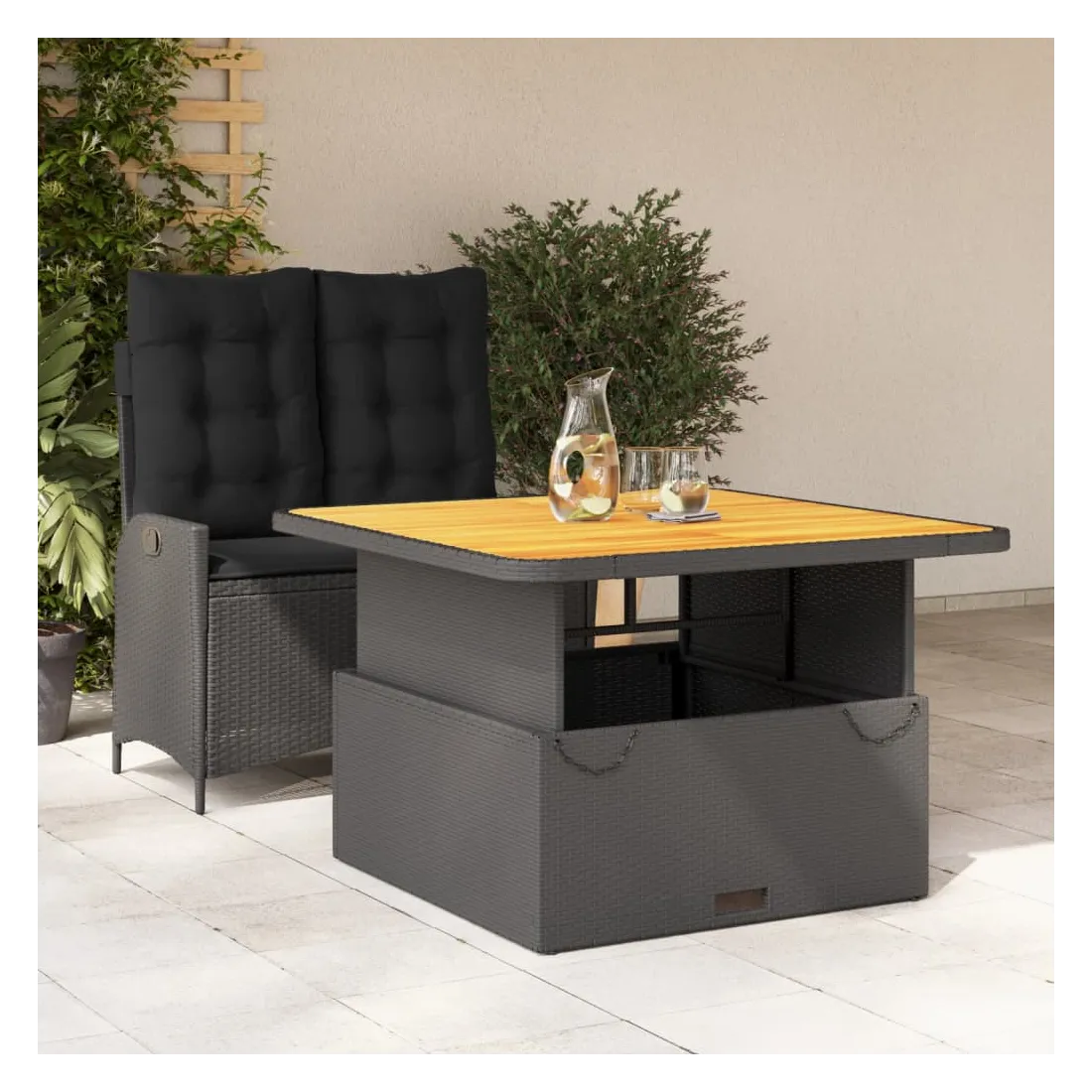 - Matériau : résine tressée, acier enduit de poudre, bois d'acacia massif avec finition à l'huile