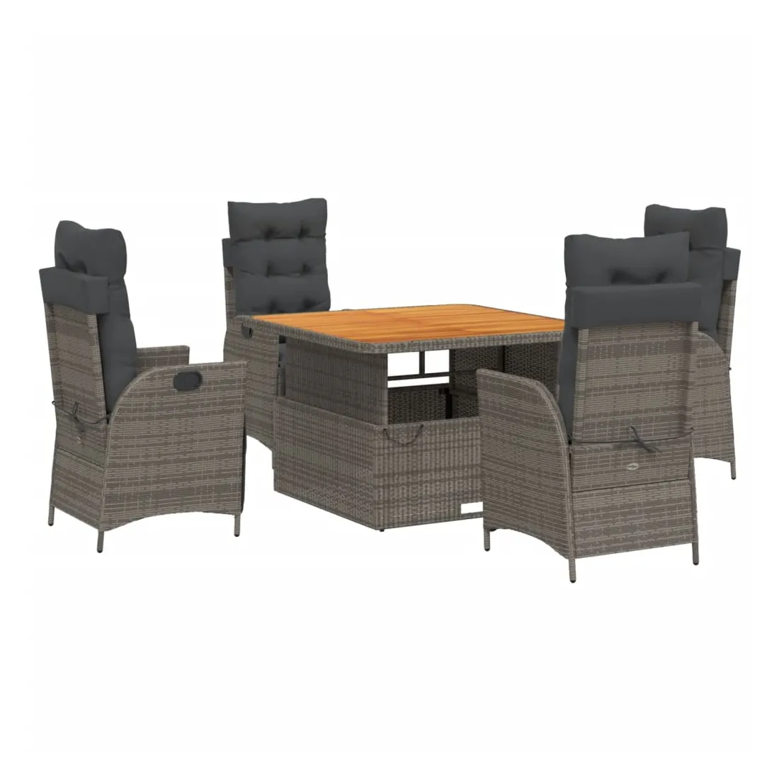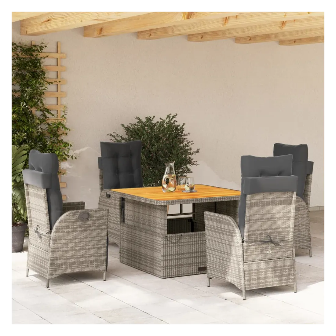 Cet ensemble de salle à manger de jardin est un excellent choix pour les repas en plein air ou pour vous détendre dans le jardin, dans l'arrière-cour ou sur la terrasse. Matériau durable : la résine tressée, également connue sous le nom de poly rotin, est un matériau synthétique solide et nécessitant peu d'entretien qui ressemble au rotin naturel. Il est léger, facile à nettoyer et couramment utilisé pour les meubles d'extérieur en raison de sa durabilité et de ses propriétés de résistance aux intempéries.Dossier réglable : ce siège de jardin est doté d'une poignée. Vous pouvez régler le dossier dans n'importe quelle position en tirant sur la poignée et le remettre rapidement dans sa position initiale.Dessus de table réglable : le dessus de table peut être soulevé pour rendre la table plus haute, ce qui transforme la table d'extérieur d'une table basse à une table de salle à manger. Elle est parfaite pour recevoir des invités ou prendre des repas à l'extérieur.Housse amovible et lavable : ces coussins de siège sont dotés de housses amovibles pour un lavage et un entretien faciles. Les coussins de dossier ont un rabat à l'arrière pour une fixation facile aux dossiers.Expérience d'assise confortable : ce mobilier d'extérieur, doté de coussins épais, offre une expérience d'assise confortable. Bon à savoir :Pour que vos meubles d'extérieur restent beaux, nous vous recommandons de les protéger avec une housse imperméable.