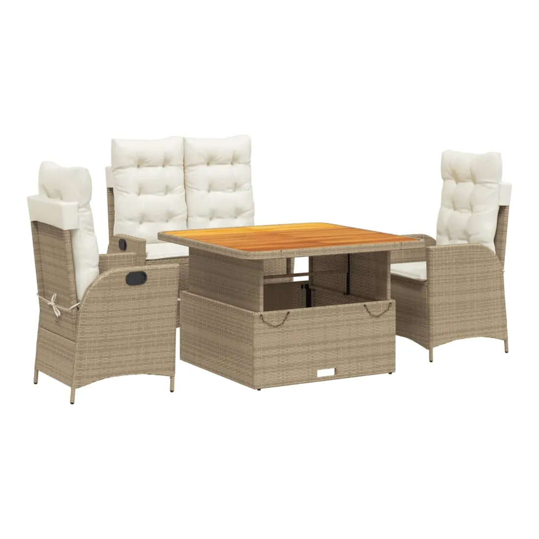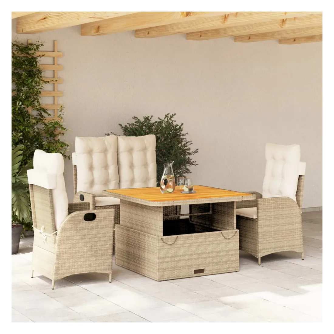 Cet ensemble de salle à manger de jardin est un excellent choix pour les repas en plein air ou pour vous détendre dans le jardin, dans l'arrière-cour ou sur la terrasse. Matériau durable : la résine tressée, également connue sous le nom de poly rotin, est un matériau synthétique solide et nécessitant peu d'entretien qui ressemble au rotin naturel. Il est léger, facile à nettoyer et couramment utilisé pour les meubles d'extérieur en raison de sa durabilité et de ses propriétés de résistance aux intempéries.Dossier réglable : ce siège de jardin est doté d'une poignée. Vous pouvez régler le dossier dans n'importe quelle position en tirant sur la poignée et le remettre rapidement dans sa position initiale.Dessus de table réglable : le dessus de table peut être soulevé pour rendre la table plus haute, ce qui transforme la table d'extérieur d'une table basse à une table de salle à manger. Elle est parfaite pour recevoir des invités ou prendre des repas à l'extérieur.Housse amovible et lavable : ces coussins de siège sont dotés de housses amovibles pour un lavage et un entretien faciles. Les coussins de dossier ont un rabat à l'arrière pour une fixation facile aux dossiers.Expérience d'assise confortable : ce mobilier d'extérieur, doté de coussins épais, offre une expérience d'assise confortable. Bon à savoir :Pour que vos meubles d'extérieur restent beaux, nous vous recommandons de les protéger avec une housse imperméable.