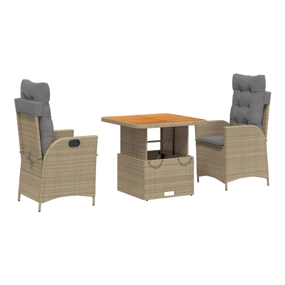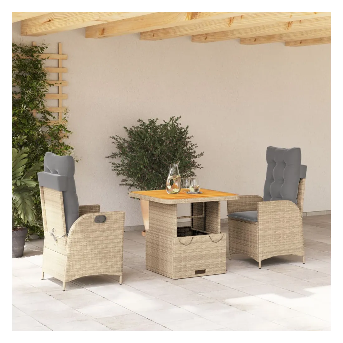 Cet ensemble de salle à manger de jardin est un excellent choix pour les repas en plein air ou pour vous détendre dans le jardin, dans l'arrière-cour ou sur la terrasse. Matériau durable : la résine tressée, également connue sous le nom de poly rotin, est un matériau synthétique solide et nécessitant peu d'entretien qui ressemble au rotin naturel. Il est léger, facile à nettoyer et couramment utilisé pour les meubles d'extérieur en raison de sa durabilité et de ses propriétés de résistance aux intempéries.Dossier réglable : ce siège de jardin est doté d'une poignée. Vous pouvez régler le dossier dans n'importe quelle position en tirant sur la poignée et le remettre rapidement dans sa position initiale.Dessus de table réglable : le dessus de table peut être soulevé pour rendre la table plus haute, ce qui transforme la table d'extérieur d'une table basse à une table de salle à manger. Elle est parfaite pour recevoir des invités ou prendre des repas à l'extérieur.Housse amovible et lavable : ces coussins de siège sont dotés de housses amovibles pour un lavage et un entretien faciles. Les coussins de dossier ont un rabat à l'arrière pour une fixation facile aux dossiers.Expérience d'assise confortable : ce mobilier d'extérieur, doté de coussins épais, offre une expérience d'assise confortable. Bon à savoir :Pour que vos meubles d'extérieur restent beaux, nous vous recommandons de les protéger avec une housse imperméable.