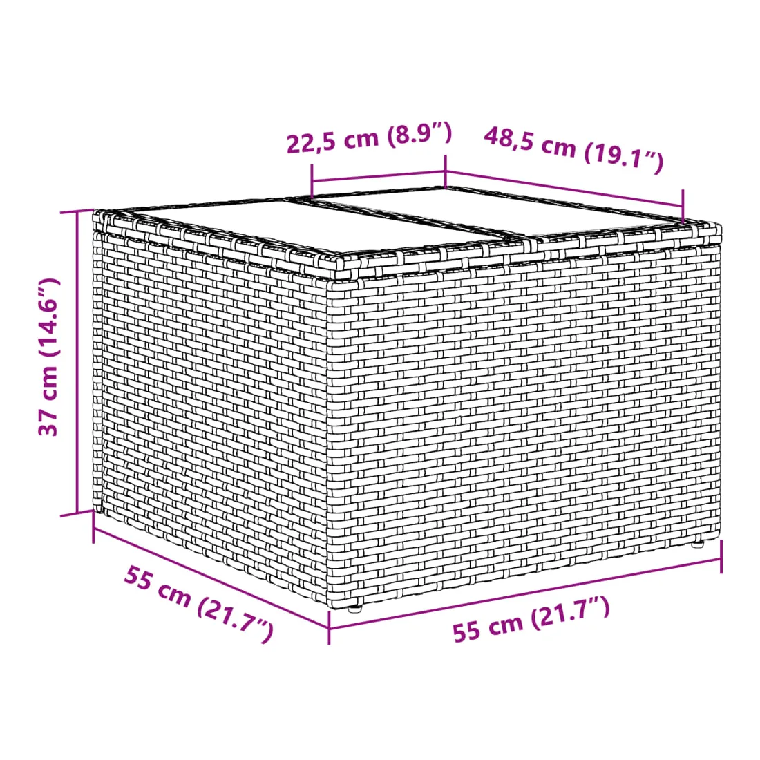 - Dimensions de la table : 55 x 55 x 37 cm (l x P x H)