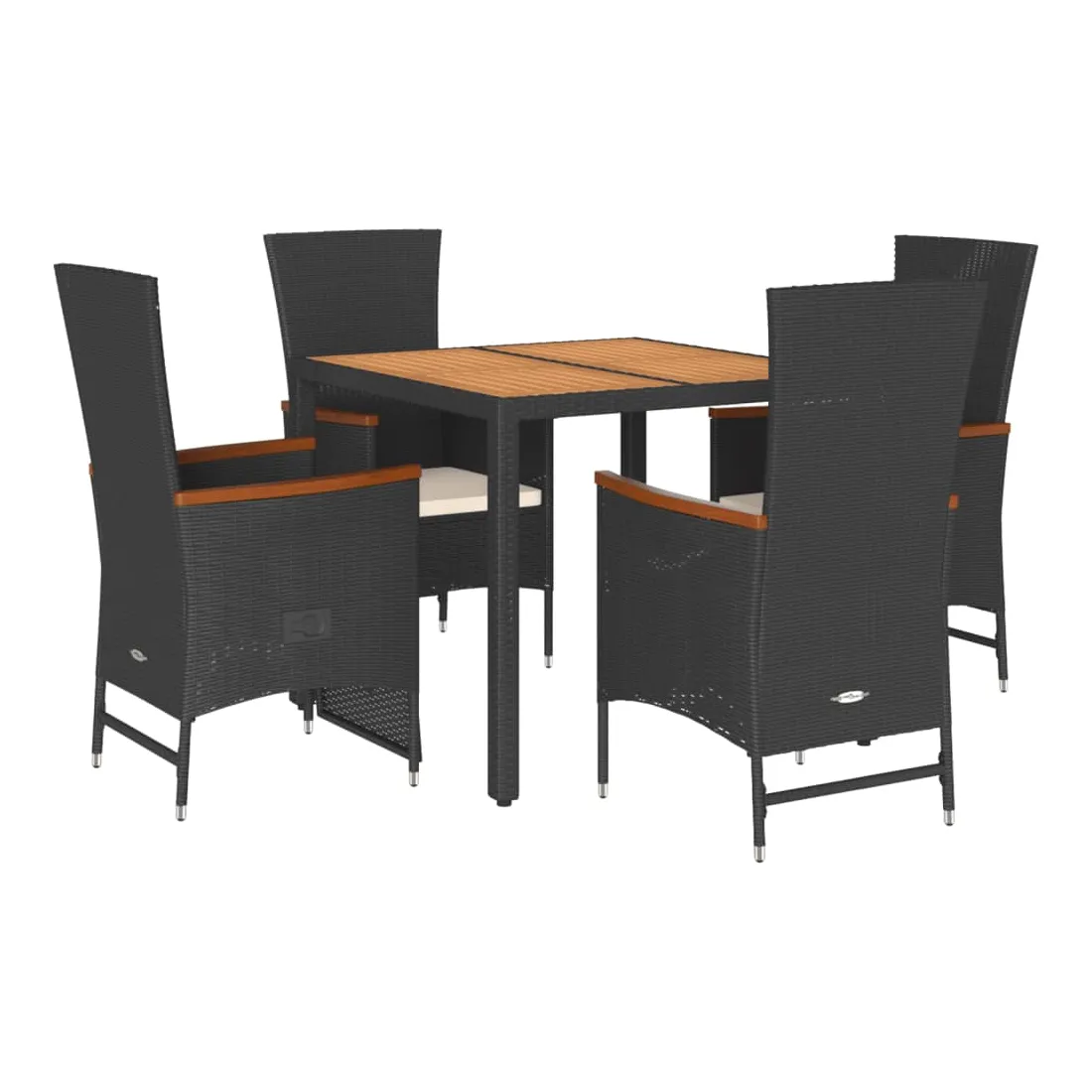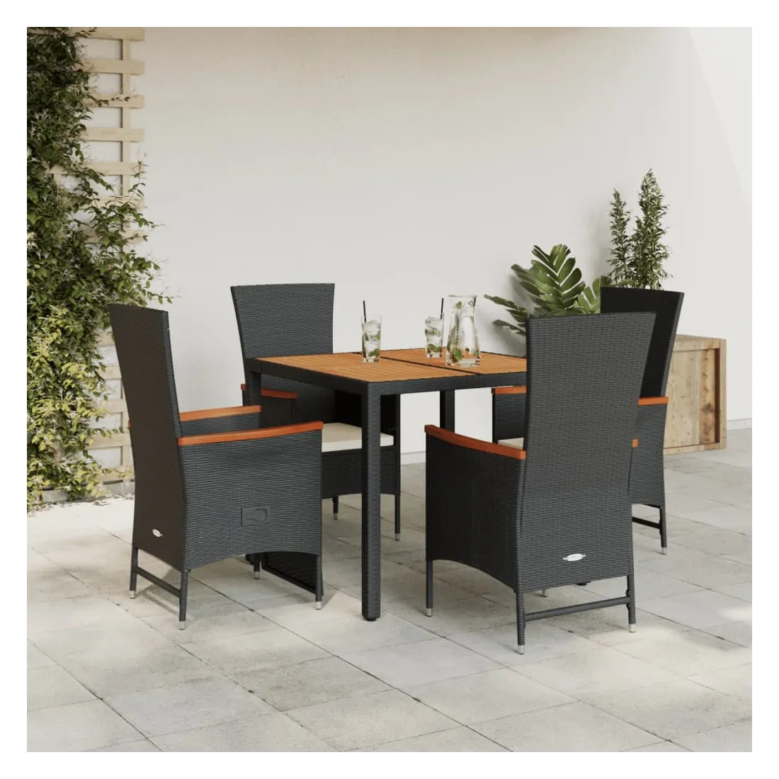 Cet ensemble de salle à manger de jardin est un excellent choix pour les repas en plein air ou simplement pour se détendre dans le jardin, la cour arrière ou sur la terrasse. Matériau durable : le rotin PE, également appelé polyrotin, est un matériau synthétique solide et facile d'entretien qui ressemble au rotin naturel. Il est léger, facile à nettoyer et couramment utilisé pour les meubles d'extérieur en raison de sa durabilité et de sa résistance aux intempéries. Dossier réglable : ce siège de jardin est équipé d'une poignée. Vous pouvez régler le dossier dans n'importe quelle position en tirant sur la poignée, puis le remettre rapidement dans sa position d'origine. Assise confortable : ce mobilier d'extérieur, doté de coussins épais et rembourrés, offre une assise confortable. Housse amovible et lavable : les coussins d'assise sont dotés de housses amovibles pour faciliter le lavage et l'entretien. Plateau stable et facile à nettoyer : Cette table de jardin est dotée d'un plateau en bois d'acacia robuste, durable et facile à nettoyer avec un chiffon humide. Bon à savoir :Pour que votre mobilier d'extérieur reste beau, nous vous recommandons de le protéger avec une housse imperméable.