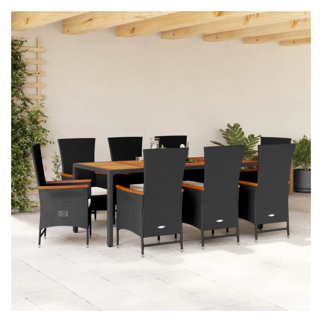 Cet ensemble de salle à manger de jardin est un excellent choix pour les repas en plein air ou pour vous détendre dans le jardin, dans l'arrière-cour ou sur la terrasse. Matériau durable : la résine tressée, également connue sous le nom de poly rotin, est un matériau synthétique solide et nécessitant peu d'entretien qui ressemble au rotin naturel. Il est léger, facile à nettoyer et couramment utilisé pour les meubles d'extérieur en raison de sa durabilité et de ses propriétés de résistance aux intempéries.Dossier réglable : ce siège de jardin est doté d'une poignée. Vous pouvez régler le dossier dans n'importe quelle position en tirant sur la poignée et le remettre rapidement dans sa position initiale.Expérience d'assise confortable : ce mobilier d'extérieur, doté de coussins épais, offre une expérience d'assise confortable.Housse amovible et lavable : ces coussins de siège sont dotés de housses amovibles pour un lavage et un entretien faciles.Dessus stable et facile à nettoyer : cette table de jardin a un dessus en bois d'acacia robuste, durable et facile à nettoyer avec un chiffon humide. Bon à savoir :Pour que vos meubles d'extérieur restent beaux, nous vous recommandons de les protéger avec une housse imperméable.