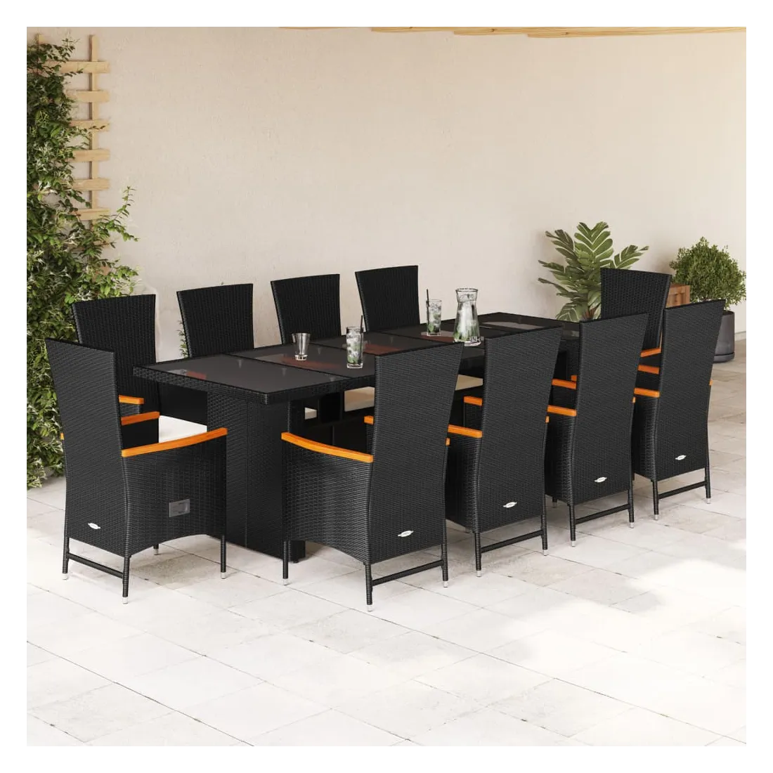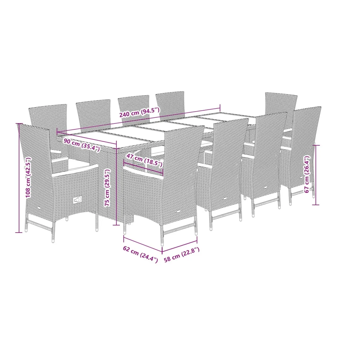 Cet ensemble de salle à manger de jardin est un excellent choix pour les repas en plein air ou pour vous détendre dans le jardin, dans l'arrière-cour ou sur la terrasse. Matériau durable : la résine tressée, également connue sous le nom de poly rotin, est un matériau synthétique solide et nécessitant peu d'entretien qui ressemble au rotin naturel. Il est léger, facile à nettoyer et couramment utilisé pour les meubles d'extérieur en raison de sa durabilité et de ses propriétés de résistance aux intempéries.Dossier réglable : ce siège de jardin est doté d'une poignée. Vous pouvez régler le dossier dans n'importe quelle position en tirant sur la poignée et le remettre rapidement dans sa position initiale.Expérience d'assise confortable : ce mobilier d'extérieur, doté de coussins épais, offre une expérience d'assise confortable.Housse amovible et lavable : ces coussins de siège sont dotés de housses amovibles pour un lavage et un entretien faciles.Dessus en verre : le dessus de la table d'extérieur est fabriqué en verre trempé solide et durable, ce qui le rend facile à nettoyer avec un chiffon humide et ajoute une touche d'élégance à votre espace extérieur. Bon à savoir :Pour que vos meubles d'extérieur restent beaux, nous vous recommandons de les protéger avec une housse imperméable.