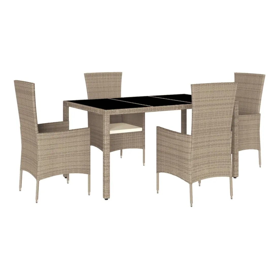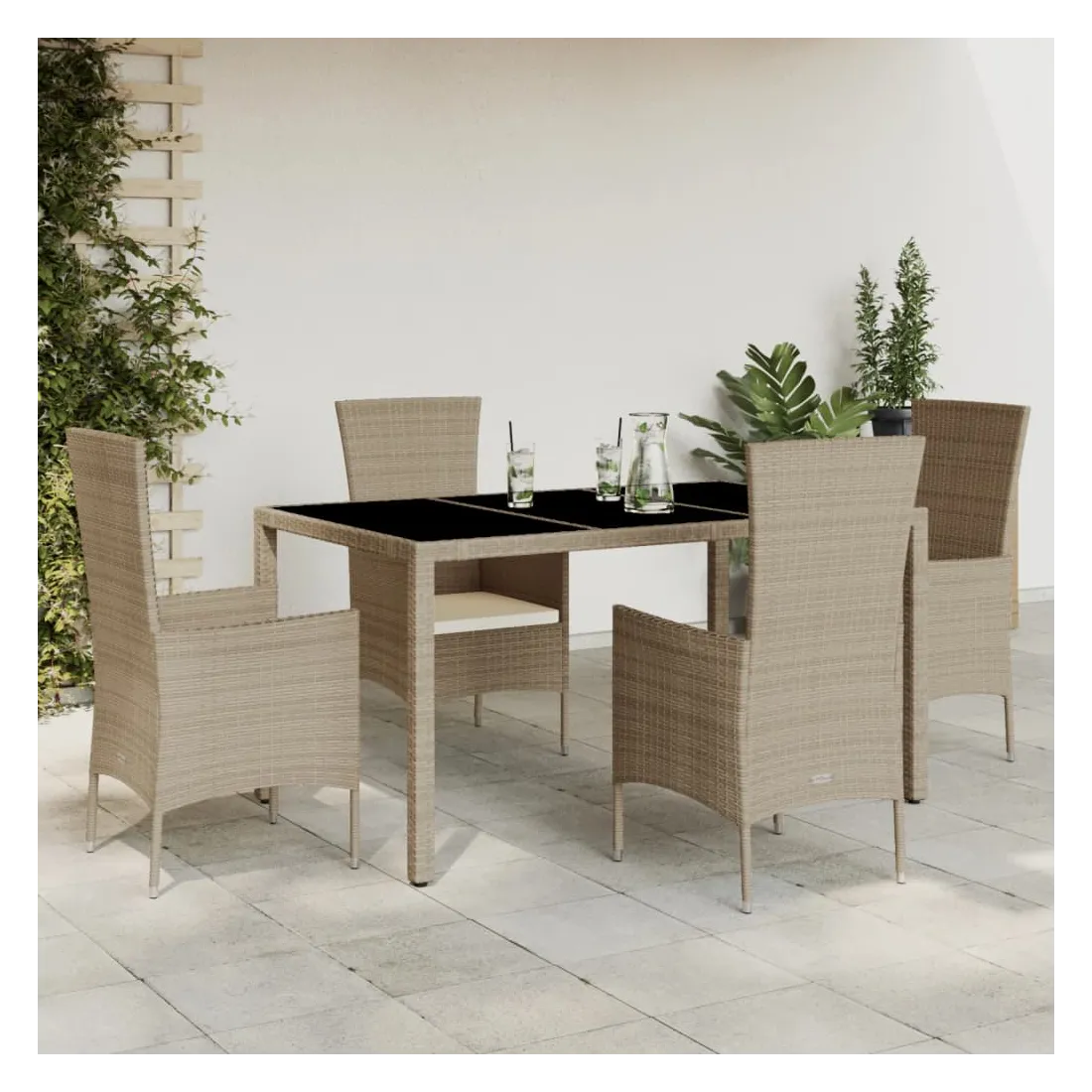 Cet ensemble de salle à manger de jardin est un excellent choix pour les repas en plein air ou pour vous détendre dans le jardin, dans l'arrière-cour ou sur la terrasse. Matériau durable : la résine tressée, également connue sous le nom de poly rotin, est un matériau synthétique solide et nécessitant peu d'entretien qui ressemble au rotin naturel. Il est léger, facile à nettoyer et couramment utilisé pour les meubles d'extérieur en raison de sa durabilité et de ses propriétés de résistance aux intempéries.Expérience d'assise confortable : ce mobilier d'extérieur, doté de coussins épais, offre une expérience d'assise confortable.Housse amovible et lavable : ces coussins de siège sont dotés de housses amovibles pour un lavage et un entretien faciles.Dessus en verre : le dessus de la table d'extérieur est fabriqué en verre trempé solide et durable, ce qui le rend facile à nettoyer avec un chiffon humide et ajoute une touche d'élégance à votre espace extérieur. Bon à savoir :Pour que vos meubles d'extérieur restent beaux, nous vous recommandons de les protéger avec une housse imperméable.