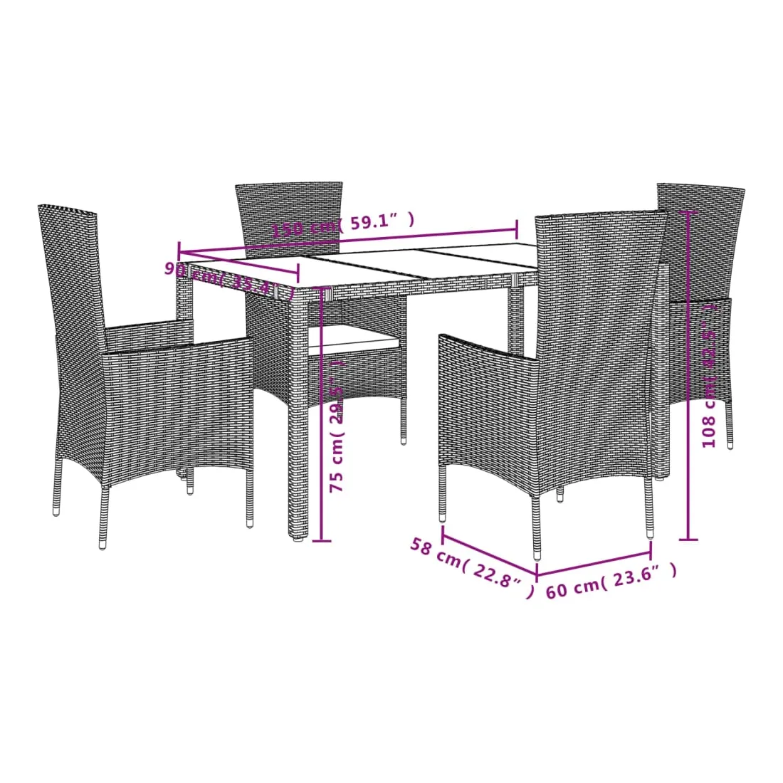 - Matériau : résine tressée, acier enduit de poudre, verre trempé