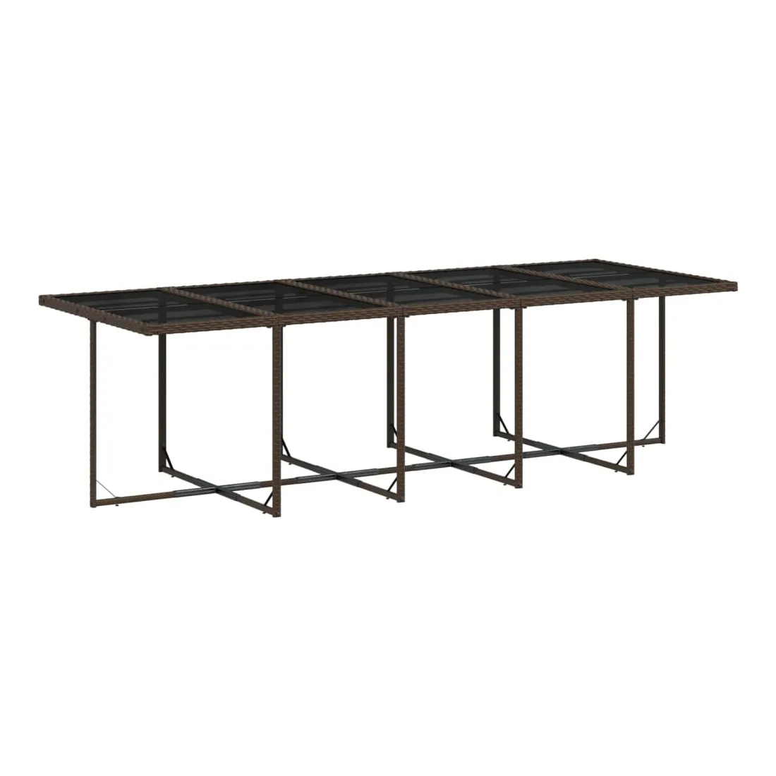 Cet ensemble de salle à manger de jardin est un excellent choix pour les repas en plein air ou pour vous détendre dans le jardin, dans l'arrière-cour ou sur la terrasse. Matériau durable : la résine tressée, également connue sous le nom de poly rotin, est un matériau synthétique solide et nécessitant peu d'entretien qui ressemble au rotin naturel. Il est léger, facile à nettoyer et couramment utilisé pour les meubles d'extérieur en raison de sa durabilité et de ses propriétés de résistance aux intempéries.Rangement compact : ces chaises sont dotées d'un dossier rabattable, ce qui permet de les ranger facilement sous la table. Une fois pliées, elles se rangent parfaitement sous la table, formant un cube peu encombrant. Expérience d'assise confortable : ce mobilier d'extérieur, doté de coussins épais, offre une expérience d'assise confortable.Housse amovible et lavable : ces coussins de siège sont dotés de housses amovibles pour un lavage et un entretien faciles.Dessus en verre : le dessus de la table d'extérieur est fabriqué en verre trempé solide et durable, ce qui le rend facile à nettoyer avec un chiffon humide et ajoute une touche d'élégance à votre espace extérieur. Bon à savoir : Pour que vos meubles d'extérieur restent beaux, nous vous recommandons de les protéger avec une housse imperméable.