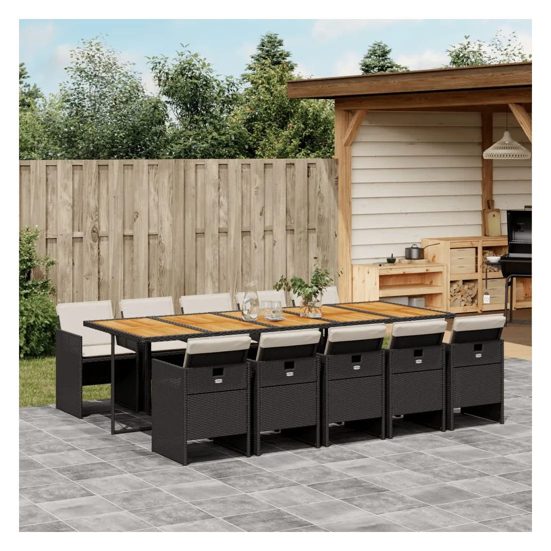Cet ensemble de salle à manger de jardin est un excellent choix pour les repas en plein air ou pour vous détendre dans le jardin, dans l'arrière-cour ou sur la terrasse. Matériau durable : la résine tressée, également connue sous le nom de poly rotin, est un matériau synthétique solide et nécessitant peu d'entretien qui ressemble au rotin naturel. Il est léger, facile à nettoyer et couramment utilisé pour les meubles d'extérieur en raison de sa durabilité et de ses propriétés de résistance aux intempéries.Rangement compact : ces chaises sont dotées d'un dossier rabattable, ce qui permet de les ranger facilement sous la table. Une fois pliées, elles se rangent parfaitement sous la table, formant un cube peu encombrant. Expérience d'assise confortable : ce mobilier d'extérieur, doté de coussins épais, offre une expérience d'assise confortable.Housse amovible et lavable : ces coussins de siège sont dotés de housses amovibles pour un lavage et un entretien faciles.Dessus stable et facile à nettoyer : cette table de jardin a un dessus en bois d'acacia robuste, durable et facile à nettoyer avec un chiffon humide. Bon à savoir : Pour que vos meubles d'extérieur restent beaux, nous vous recommandons de les protéger avec une housse imperméable.
