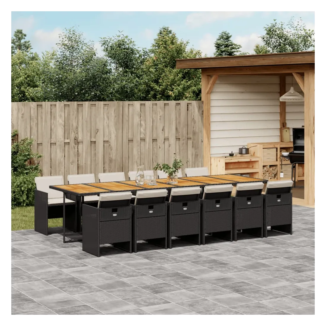 - Matériau : résine tressée, acier enduit de poudre, bois d'acacia massif avec finition à l'huile