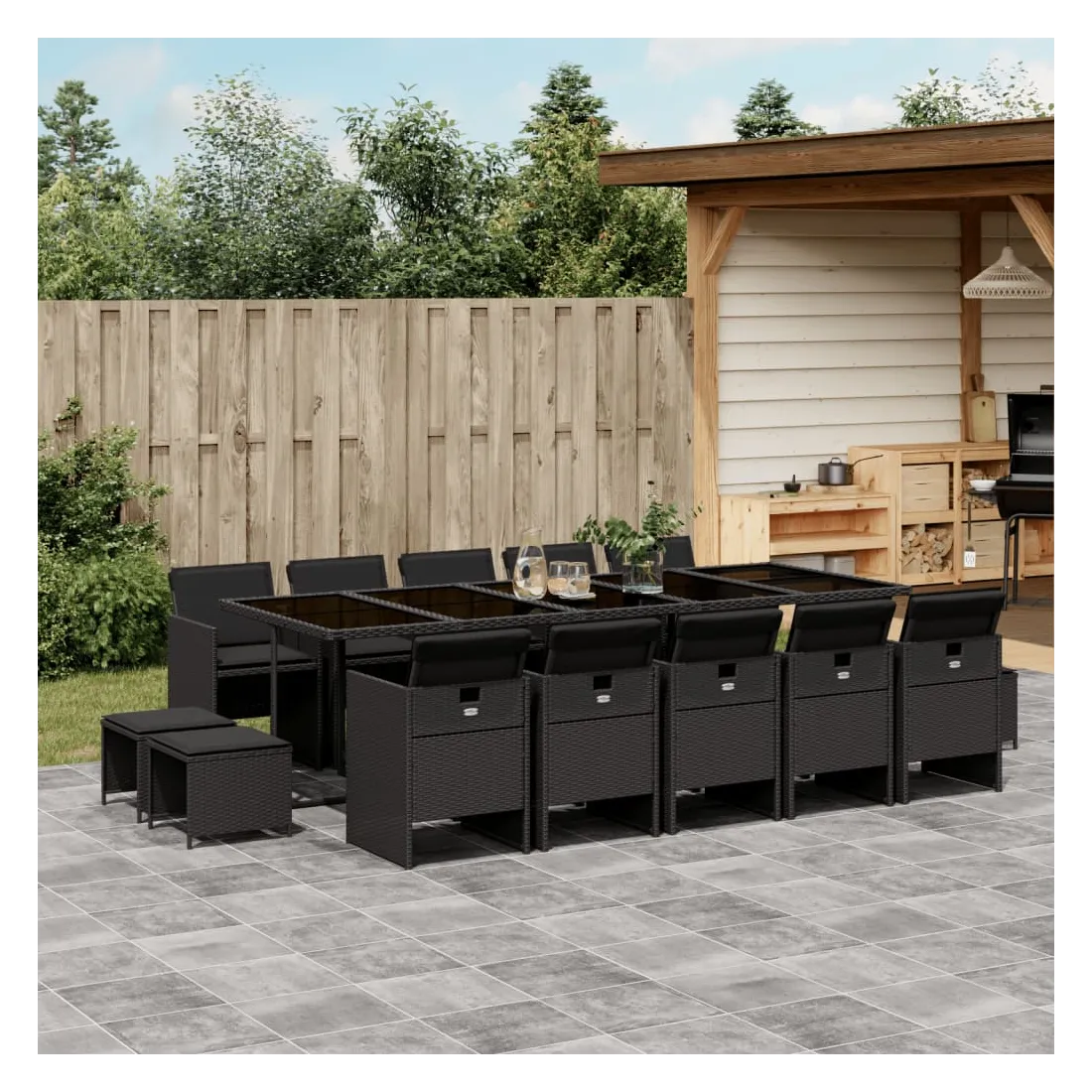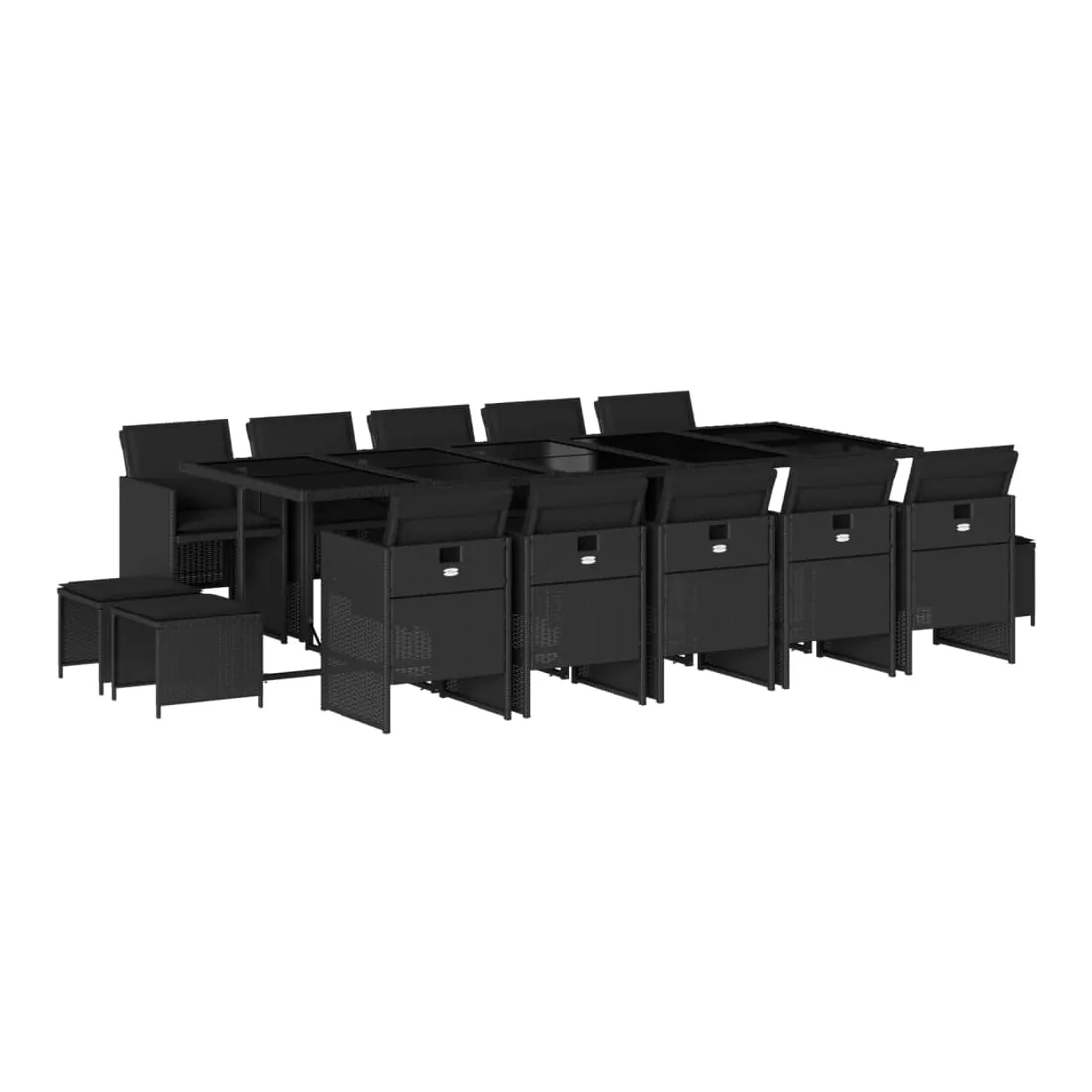 Cet ensemble de salle à manger de jardin est un excellent choix pour les repas en plein air ou pour vous détendre dans le jardin, dans l'arrière-cour ou sur la terrasse. Matériau durable : la résine tressée, également connue sous le nom de poly rotin, est un matériau synthétique solide et nécessitant peu d'entretien qui ressemble au rotin naturel. Il est léger, facile à nettoyer et couramment utilisé pour les meubles d'extérieur en raison de sa durabilité et de ses propriétés de résistance aux intempéries.Rangement compact : ces chaises sont dotées d'un dossier rabattable, ce qui permet de les ranger facilement sous la table. Une fois pliées, elles se rangent parfaitement sous la table, formant un cube peu encombrant. De plus, les tabourets peuvent également être rangés sous les chaises, maximisant encore davantage l'efficacité de l'espace. Expérience d'assise confortable : ce mobilier d'extérieur, doté de coussins épais, offre une expérience d'assise confortable.Housse amovible et lavable : ces coussins de siège sont dotés de housses amovibles pour un lavage et un entretien faciles.Dessus en verre : le dessus de la table d'extérieur est fabriqué en verre trempé solide et durable, ce qui le rend facile à nettoyer avec un chiffon humide et ajoute une touche d'élégance à votre espace extérieur. Bon à savoir : Pour que vos meubles d'extérieur restent beaux, nous vous recommandons de les protéger avec une housse imperméable.