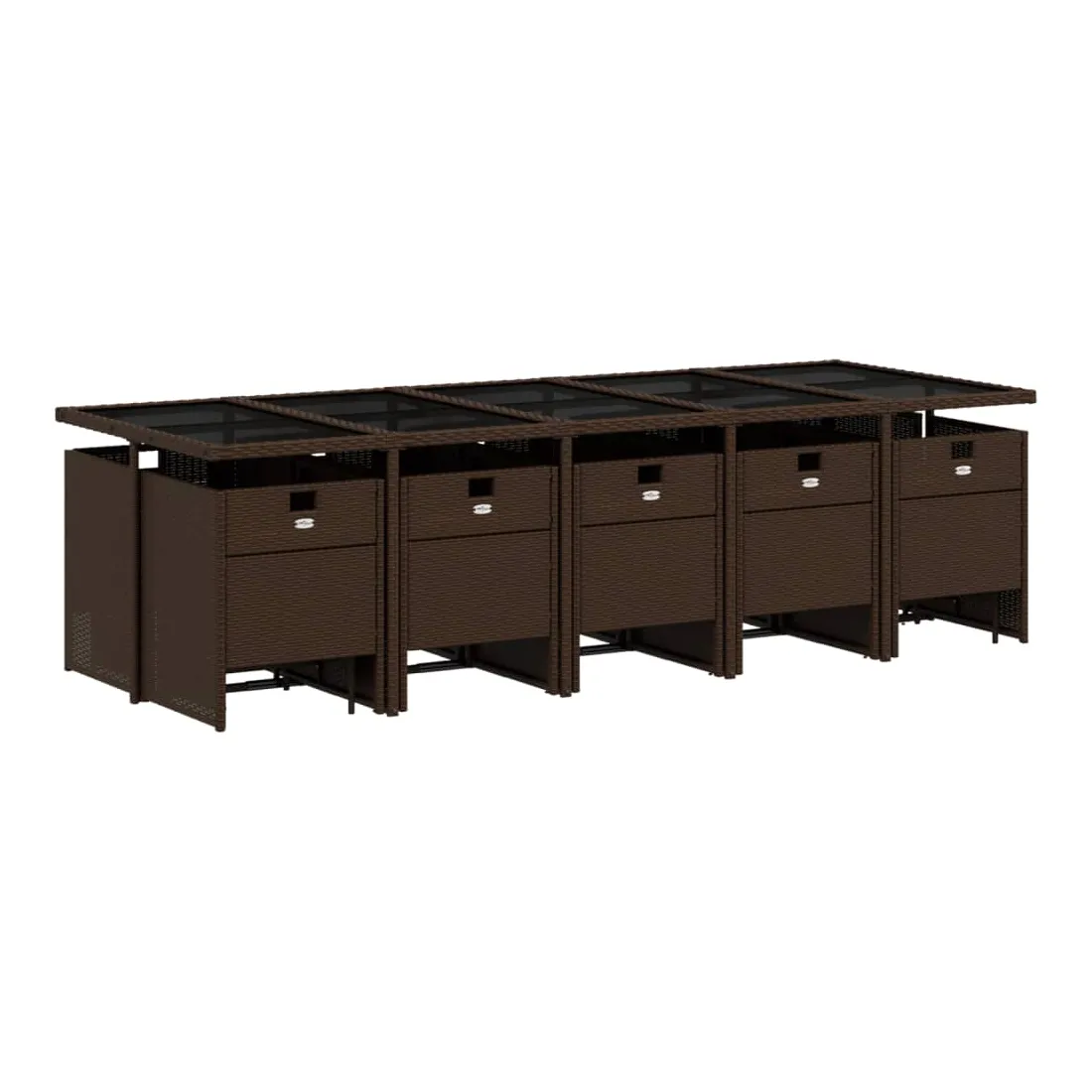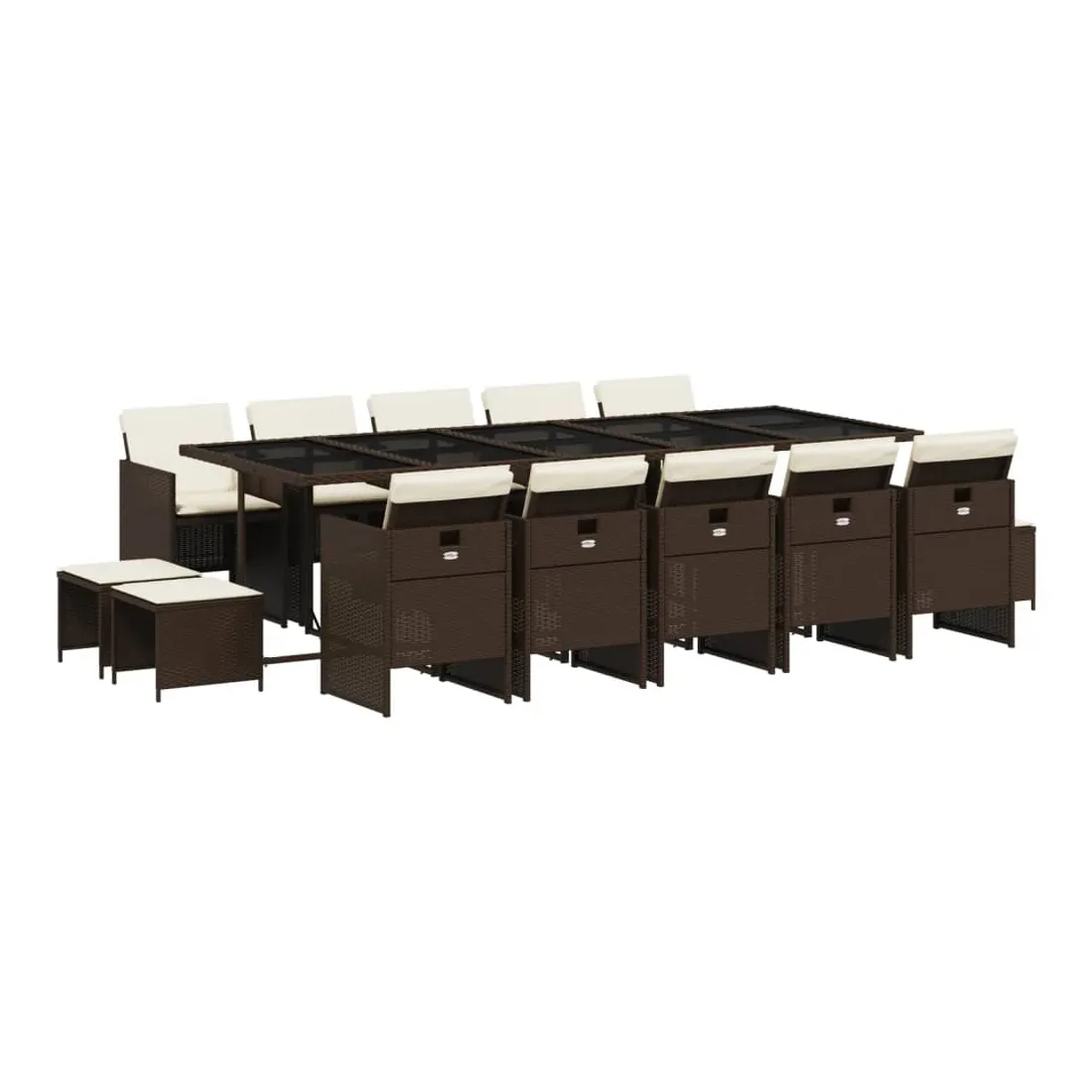 Cet ensemble de salle à manger de jardin est un excellent choix pour les repas en plein air ou pour vous détendre dans le jardin, dans l'arrière-cour ou sur la terrasse. Matériau durable : la résine tressée, également connue sous le nom de poly rotin, est un matériau synthétique solide et nécessitant peu d'entretien qui ressemble au rotin naturel. Il est léger, facile à nettoyer et couramment utilisé pour les meubles d'extérieur en raison de sa durabilité et de ses propriétés de résistance aux intempéries.Rangement compact : ces chaises sont dotées d'un dossier rabattable, ce qui permet de les ranger facilement sous la table. Une fois pliées, elles se rangent parfaitement sous la table, formant un cube peu encombrant. De plus, les tabourets peuvent également être rangés sous les chaises, maximisant encore davantage l'efficacité de l'espace. Expérience d'assise confortable : ce mobilier d'extérieur, doté de coussins épais, offre une expérience d'assise confortable.Housse amovible et lavable : ces coussins de siège sont dotés de housses amovibles pour un lavage et un entretien faciles.Dessus en verre : le dessus de la table d'extérieur est fabriqué en verre trempé solide et durable, ce qui le rend facile à nettoyer avec un chiffon humide et ajoute une touche d'élégance à votre espace extérieur. Bon à savoir : Pour que vos meubles d'extérieur restent beaux, nous vous recommandons de les protéger avec une housse imperméable.