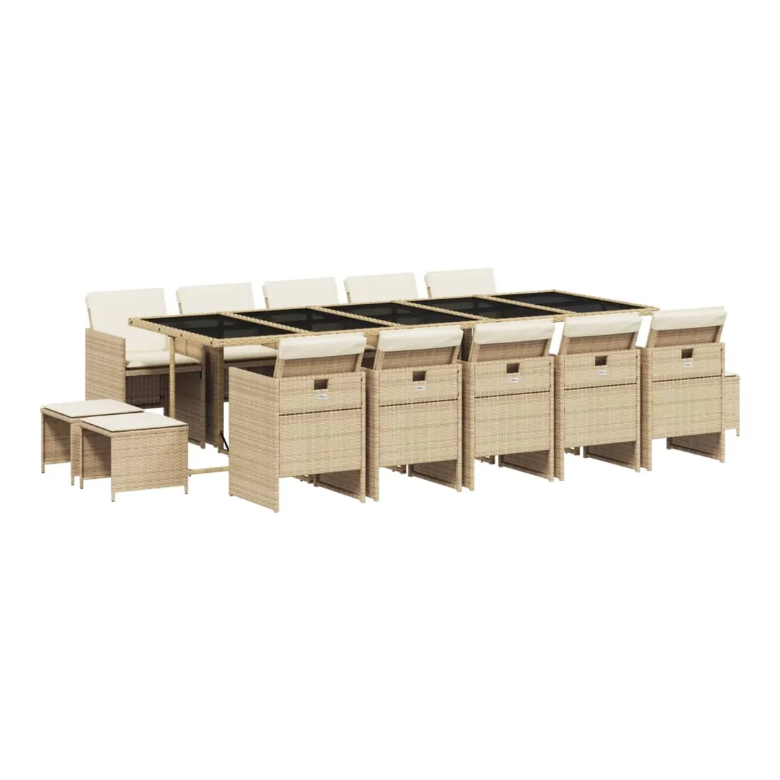 Cet ensemble de salle à manger de jardin est un excellent choix pour les repas en plein air ou pour vous détendre dans le jardin, dans l'arrière-cour ou sur la terrasse. Matériau durable : la résine tressée, également connue sous le nom de poly rotin, est un matériau synthétique solide et nécessitant peu d'entretien qui ressemble au rotin naturel. Il est léger, facile à nettoyer et couramment utilisé pour les meubles d'extérieur en raison de sa durabilité et de ses propriétés de résistance aux intempéries.Rangement compact : ces chaises sont dotées d'un dossier rabattable, ce qui permet de les ranger facilement sous la table. Une fois pliées, elles se rangent parfaitement sous la table, formant un cube peu encombrant. De plus, les tabourets peuvent également être rangés sous les chaises, maximisant encore davantage l'efficacité de l'espace. Expérience d'assise confortable : ce mobilier d'extérieur, doté de coussins épais, offre une expérience d'assise confortable.Housse amovible et lavable : ces coussins de siège sont dotés de housses amovibles pour un lavage et un entretien faciles.Dessus en verre : le dessus de la table d'extérieur est fabriqué en verre trempé solide et durable, ce qui le rend facile à nettoyer avec un chiffon humide et ajoute une touche d'élégance à votre espace extérieur. Bon à savoir : Pour que vos meubles d'extérieur restent beaux, nous vous recommandons de les protéger avec une housse imperméable.