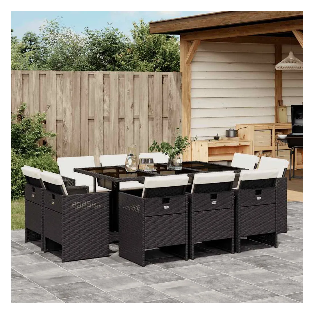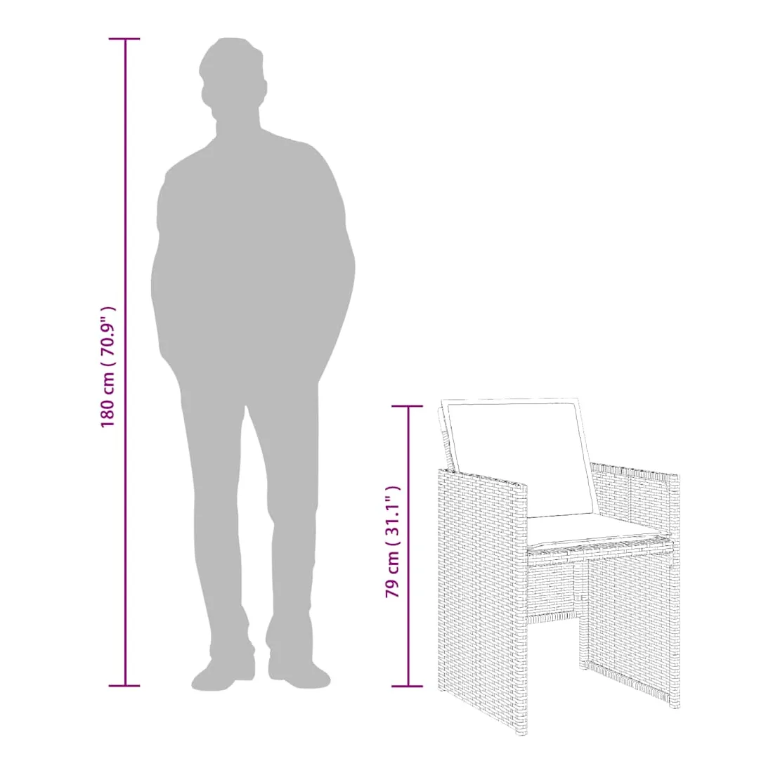 Cet ensemble de salle à manger de jardin est un excellent choix pour les repas en plein air ou pour vous détendre dans le jardin, dans l'arrière-cour ou sur la terrasse. Matériau durable : la résine tressée, également connue sous le nom de poly rotin, est un matériau synthétique solide et nécessitant peu d'entretien qui ressemble au rotin naturel. Il est léger, facile à nettoyer et couramment utilisé pour les meubles d'extérieur en raison de sa durabilité et de ses propriétés de résistance aux intempéries.Rangement compact : ces chaises sont dotées d'un dossier rabattable, ce qui permet de les ranger facilement sous la table. Une fois pliées, elles se rangent parfaitement sous la table, formant un cube peu encombrant. Expérience d'assise confortable : ce mobilier d'extérieur, doté de coussins épais, offre une expérience d'assise confortable.Housse amovible et lavable : ces coussins de siège sont dotés de housses amovibles pour un lavage et un entretien faciles.Dessus en verre : le dessus de la table d'extérieur est fabriqué en verre trempé solide et durable, ce qui le rend facile à nettoyer avec un chiffon humide et ajoute une touche d'élégance à votre espace extérieur. Bon à savoir : Pour que vos meubles d'extérieur restent beaux, nous vous recommandons de les protéger avec une housse imperméable.