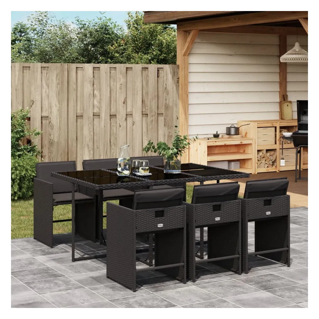Cet ensemble de salle à manger de jardin est un excellent choix pour les repas en plein air ou pour vous détendre dans le jardin, dans l'arrière-cour ou sur la terrasse. Matériau durable : la résine tressée, également connue sous le nom de poly rotin, est un matériau synthétique solide et nécessitant peu d'entretien qui ressemble au rotin naturel. Il est léger, facile à nettoyer et couramment utilisé pour les meubles d'extérieur en raison de sa durabilité et de ses propriétés de résistance aux intempéries.Rangement compact : ces chaises sont dotées d'un dossier rabattable, ce qui permet de les ranger facilement sous la table. Une fois pliées, elles se rangent parfaitement sous la table, formant un cube peu encombrant.Expérience d'assise confortable : ce mobilier d'extérieur, doté de coussins épais, offre une expérience d'assise confortable.Housse amovible et lavable : ces coussins de siège sont dotés de housses amovibles pour un lavage et un entretien faciles. Les housses de coussin de chaise ont un rabat à l'arrière pour une fixation facile aux chaises.Dessus stable et facile à nettoyer : cette table de jardin est dotée d'un dessus en verre trempé robuste, durable et facile à nettoyer à l'aide d'un chiffon humide. Bon à savoir : Pour que vos meubles d'extérieur restent beaux, nous vous recommandons de les protéger avec une housse imperméable.