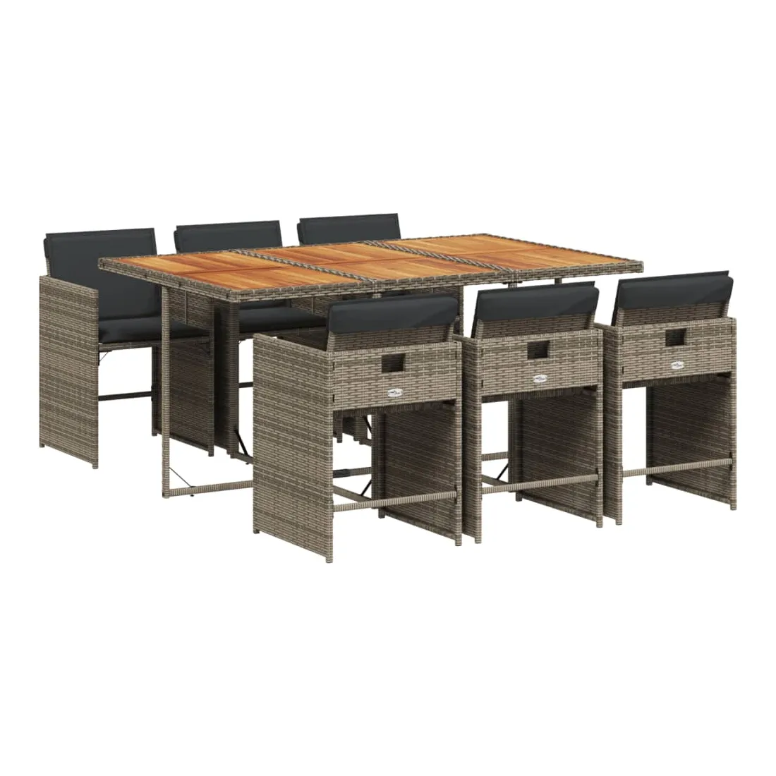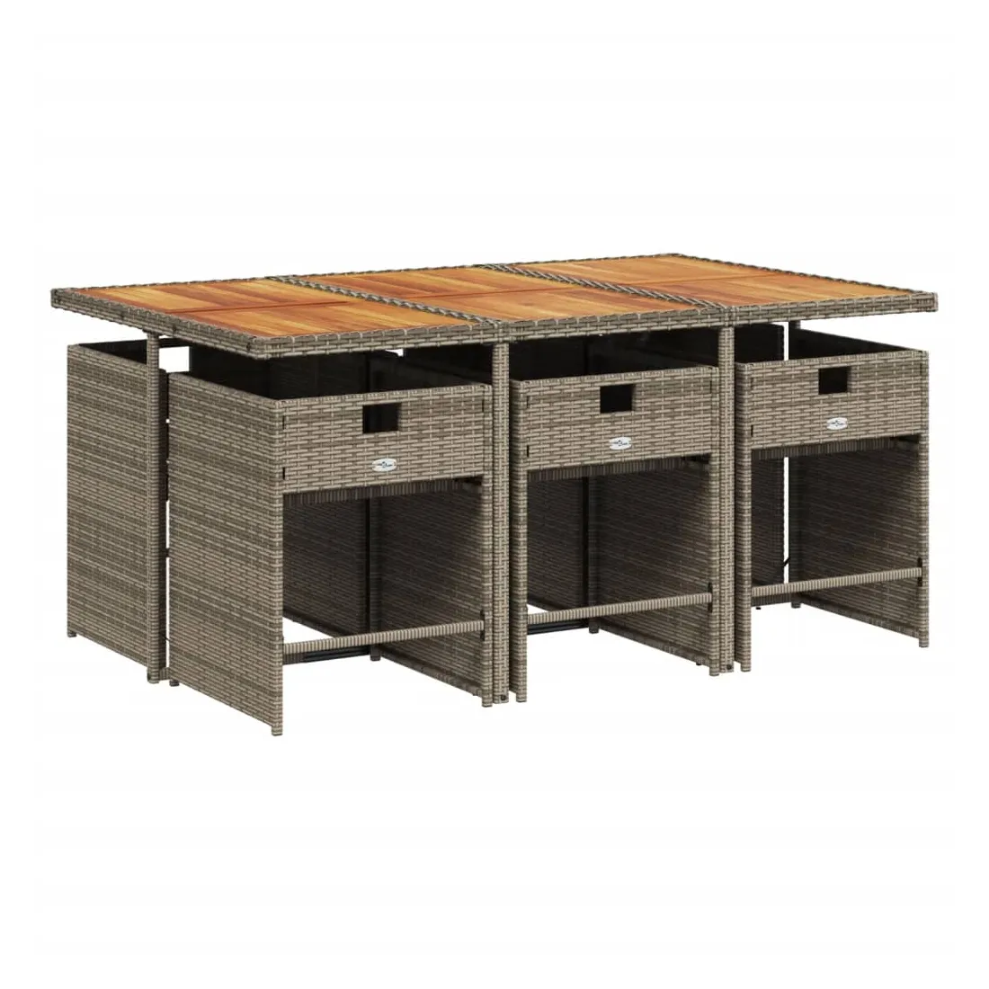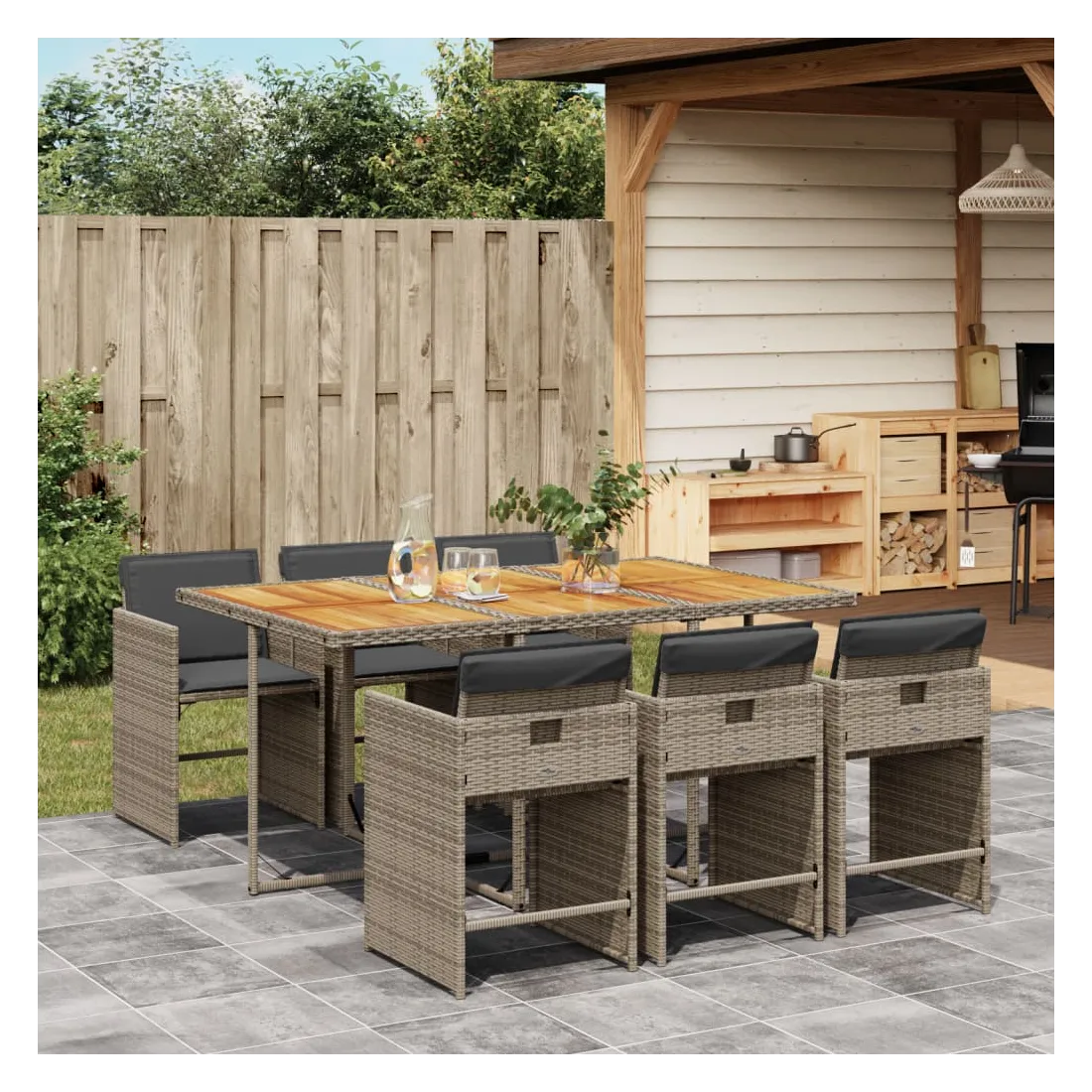 Cet ensemble de salle à manger de jardin est un excellent choix pour les repas en plein air ou pour vous détendre dans le jardin, dans l'arrière-cour ou sur la terrasse. Matériau durable : la résine tressée, également connue sous le nom de poly rotin, est un matériau synthétique solide et nécessitant peu d'entretien qui ressemble au rotin naturel. Il est léger, facile à nettoyer et couramment utilisé pour les meubles d'extérieur en raison de sa durabilité et de ses propriétés de résistance aux intempéries.Rangement compact : ces chaises sont dotées d'un dossier rabattable, ce qui permet de les ranger facilement sous la table. Une fois pliées, elles se rangent parfaitement sous la table, formant un cube peu encombrant.Expérience d'assise confortable : ce mobilier d'extérieur, doté de coussins épais, offre une expérience d'assise confortable.Housse amovible et lavable : ces coussins de siège sont dotés de housses amovibles pour un lavage et un entretien faciles. Les housses de coussin de chaise ont un rabat à l'arrière pour une fixation facile aux chaises.Dessus stable et facile à nettoyer : cette table de jardin a un dessus en bois d'acacia robuste, durable et facile à nettoyer avec un chiffon humide. Bon à savoir : Pour que vos meubles d'extérieur restent beaux, nous vous recommandons de les protéger avec une housse imperméable.