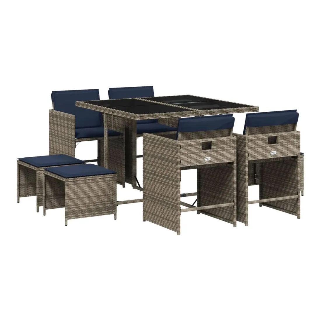 Cet ensemble de salle à manger de jardin est un excellent choix pour les repas en plein air ou pour vous détendre dans le jardin, dans l'arrière-cour ou sur la terrasse. Matériau durable : la résine tressée, également connue sous le nom de poly rotin, est un matériau synthétique solide et nécessitant peu d'entretien qui ressemble au rotin naturel. Elle est légère, facile à nettoyer et couramment utilisée pour les meubles d'extérieur en raison de sa durabilité et de ses propriétés de résistance aux intempéries.Rangement compact : ces chaises sont dotées d'un dossier rabattable, ce qui permet de les ranger facilement sous la table. Une fois pliées, elles se rangent parfaitement sous la table, formant un cube peu encombrant. De plus, les tabourets peuvent également être rangés sous les chaises, maximisant encore davantage l'efficacité de l'espace.Expérience d'assise confortable : ce mobilier d'extérieur, doté de coussins épais, offre une expérience d'assise confortable.Housse amovible et lavable : ces coussins de siège sont dotés de housses amovibles pour un lavage et un entretien faciles. Les housses de coussin de chaise ont un rabat à l'arrière pour une fixation facile aux chaises.Dessus stable et facile à nettoyer : cette table de jardin est dotée d'un dessus en verre trempé robuste, durable et facile à nettoyer à l'aide d'un chiffon humide. Bon à savoir : Pour que vos meubles d'extérieur restent beaux, nous vous recommandons de les protéger avec une housse imperméable.